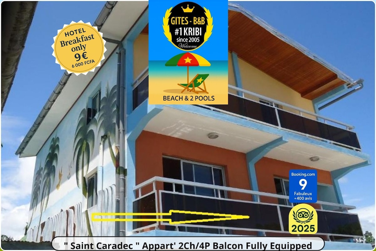 La Résidence Créolia est un havre de paix et de confort situé à 700m de l’océan, 10mn de Kribi centre, 15mn du Golf de Kribi, 20mn des chutes de la Lobé. Elle a été inaugurée en juillet 2024. Ce 3 pièces de 104 m2 donne sur une terrasse panoramique de 31 m2 surplombant le jardin équipé d'une piscine hors sol sécurisée. Le vaste séjour de 40 m2 comporte un salon avec TV et décodeur et une grande salle à manger. Cuisine séparée moderne tout équipée. Chaque chambre a 1 SDB et 1 terrasse privée.