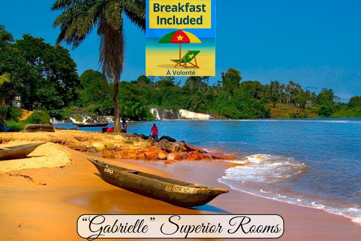 The Gabrielle room, approximately 20 m², is bright and air-conditioned, with a comfortable double bed and a large private bathroom equipped with a bathtub, shower, toilet, and hot water. Amenities include a flat-screen TV, Wi-Fi, a refrigerator, and a welcome tray. Located in the heart of the Les Gîtes de Kribi resort, with access to all amenities: two swimming pools, the beach, a spa, and gardens. Enjoy a 10% discount at the beachfront restaurant, Au Plaisir du Goût. Breakfast is optional.