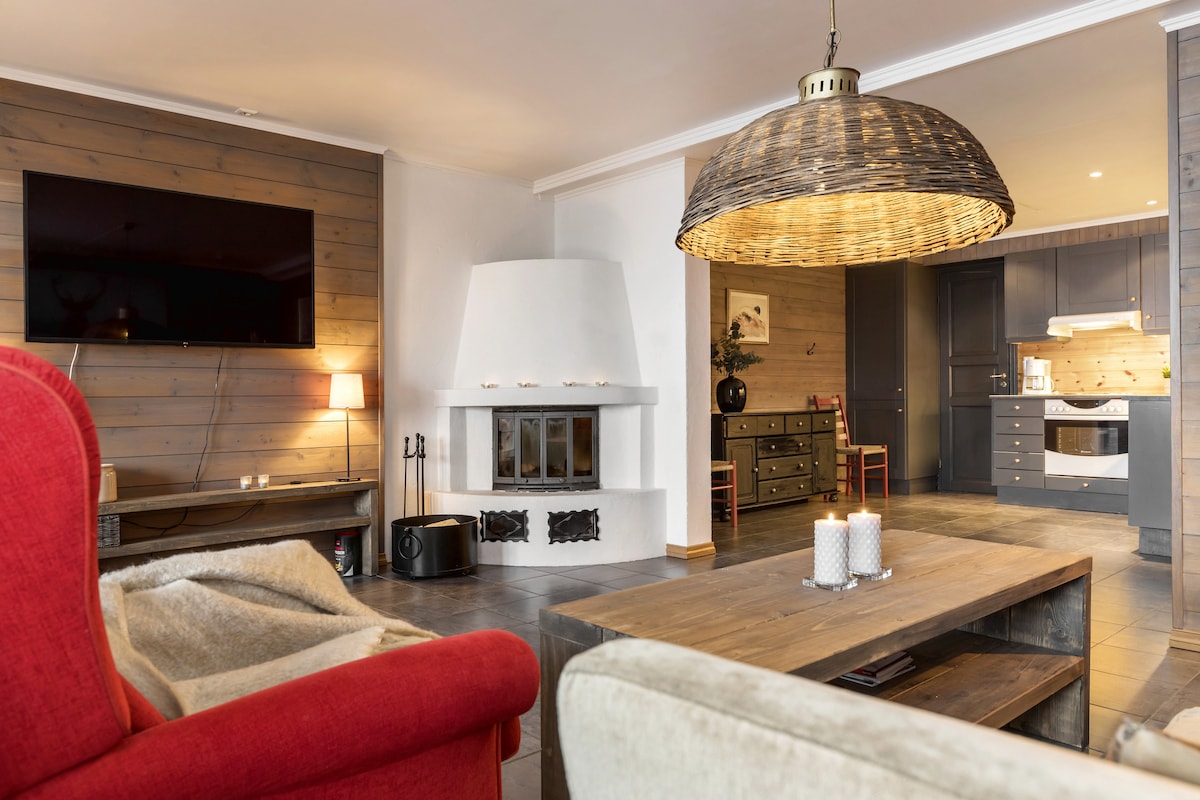 - Rett ved skiheisen. - Gratis P for én bil i garasjeanlegg. - Perfekt for å nyte dager i fjellet. - 6 sengeplasser fordelt på ett stort soverom, og soverom to er en alkove med to doble senger. - Moderne og hyggelig. - Godt utstyrt kjøkken med Vannkoker, airfrier, mikroovn, kaffetrakter, bambusdamper, kjeler, stekepanner og alt utstyr som trengs. - 70 tommers TV med Chromecast. - Brettspill å låne - Balkong med fin utsikt mot Tuv - La bilen stå - alt er i gangavstand - Kun voksne/familie