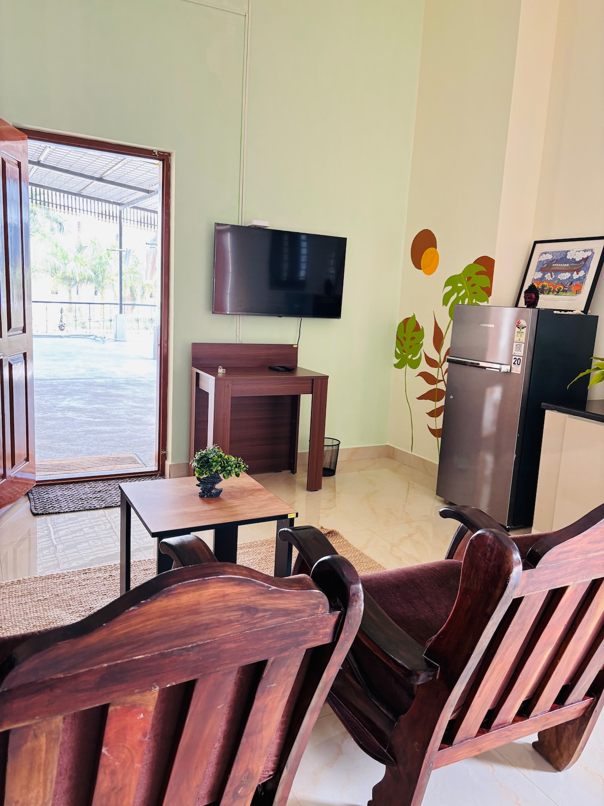 CozyNest Retreat – your peaceful 2BHK getaway just 5 km from iconic Brindavan Gardens. Ideal for families, friends, couples, and remote workers. Our home features: -1 King & 1 Double Bed with comfy pillows and fresh linens -Smart TV (40”) with 15+ OTT apps & DTH -WiFi – stream, work, or game smoothly -Modular kitchen(stove, pure it purifier) -Modern bathroom with hot water -Smart lock entry – check in anytime, hassle-free -CCTV & gated compound, near Infosys, KRS. -Refrigerator -NonAC
