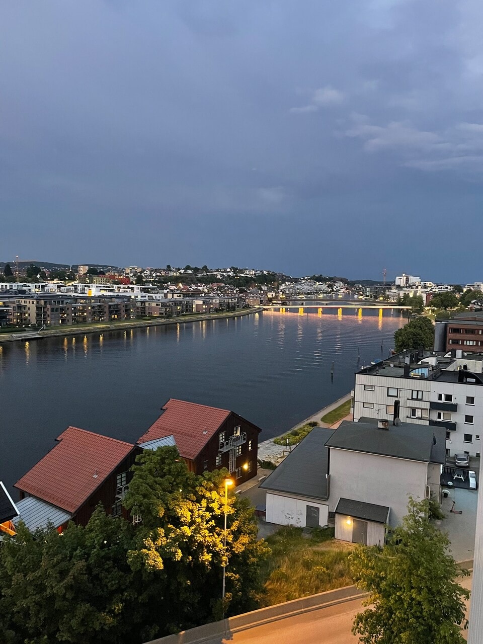 Enten har du et sted med sjøen, eller i sentrum. Her får du begge deler! Balkong på begge sider og lys inn fra 4 kanter! ☀️☀️ Bare 15 meter fra bryggekanten gjør at den er nærmest sjøen av alle leiligheter i kvadraturen. 🌊 Leiligheten ligger langs den bilfrie strandpromenaden. 🏝 Du nyte panoramautsikten av byfjorden, festningen og bystranda. Du ser ut på Grønningen fyr som møter horisonten ute i havet.🎣 Du ser også rett bort på det nye utendørsbassenget til Aquarama. 🏊♀️🏊♀️🏊🏊♂️