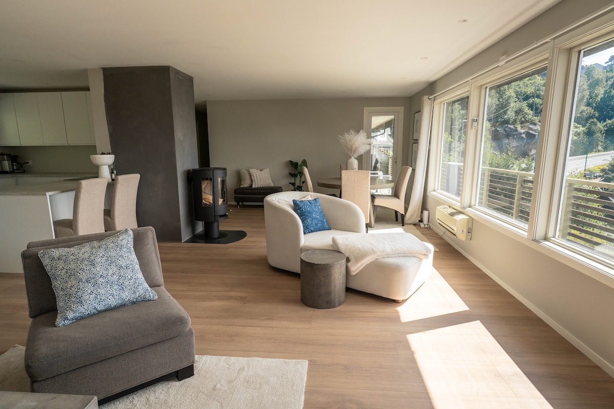 Well-equipped home with 4 bedrooms over 3 floors, centrally located in Kristiansand. This is an ideal place for those who want both comfort, space and a central location during their stay. It's a short walk to the city center, beach, shops and buss to the ZOO. Here you live in a quiet and safe neighborhood with free parking. The apartment is perfect for families, groups of friends, work groups. Nice view, with sun late into the evening.