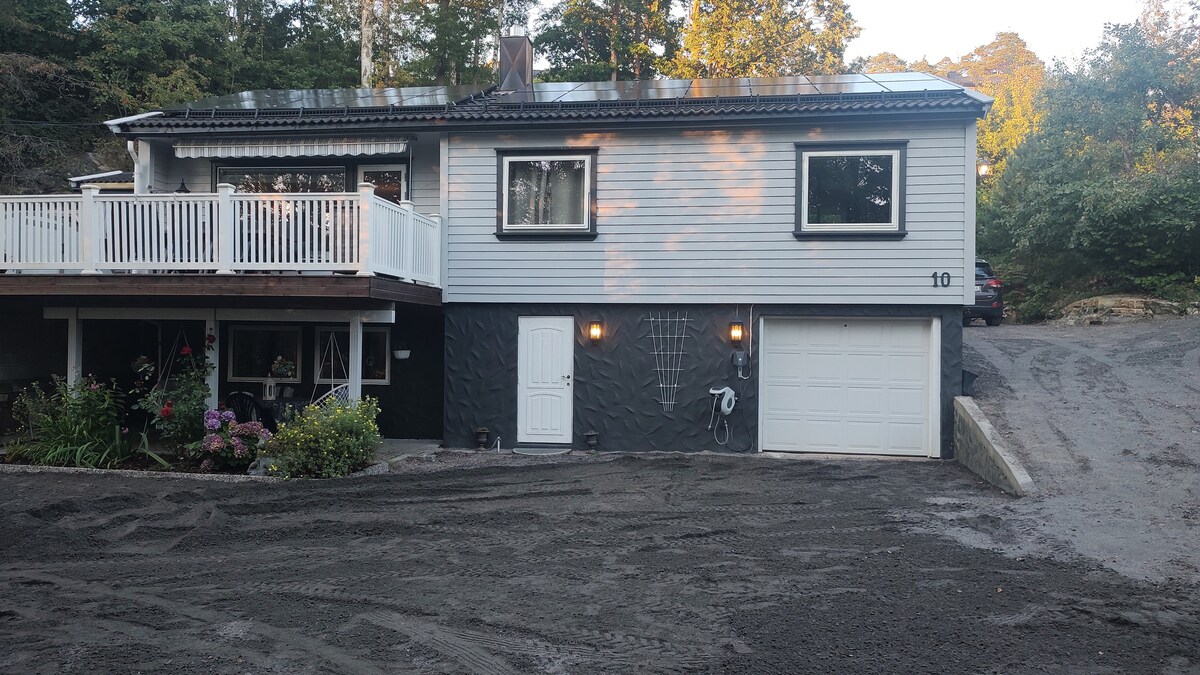 Sentrum og sjønært hus med plass til 2-3 familier eller 4 voksne par. Huset er nylig renovert med alle moderne fasiliteter. Kort vei til dyreparken, klatrepark, bystranda, badeland, Bragdøya og Ravnedalen. Turområder i gangavstand. Sentrum ligger 7 minutter og dyreparken er 15 min unna med bil. Boligen har 3 soverom med dobbeltsenger i tillegg er det 1 dobbeltseng i kjellerstuen og enkeltseng. Ytterligere senger kan settes opp. Sengetøy og håndklær kan leies for 150 pr sett.