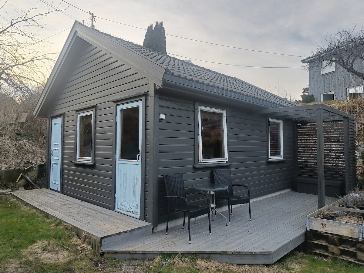 Velkommen til en liten og koselig hytte på et gårdstun ved sjøen. På gården har vi seks ammekyr. Som på sommerhalvåret går på beite rundt huset. Hytta har et lite kjøkken, bad, stue og soverom. I stua er det sovesofa med plass til to. Og på soverommet er det også to sengeplasser. En ypperlig plass for deg som ønsker å oppleve Sørlandet, eller kunn trenger en plass å sove for en natt eller to. En hytte som har både skog, sjø og innsjø tett på.
