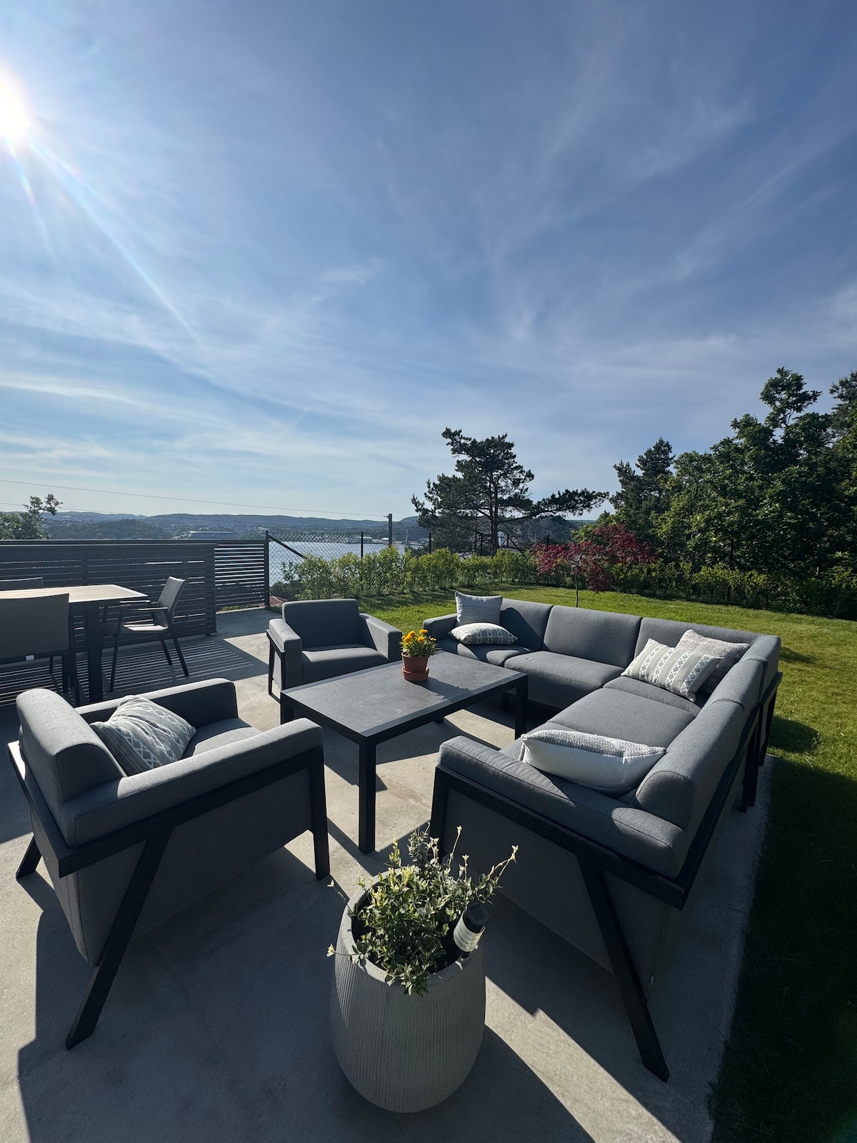 Enjoy panoramic views of Kristiansand from this fantastic house with a pool. The house features a large living room and a spacious TV room, perfect for relaxation. Bjørn, born and raised in Kristiansand, provides great recommendations on places to explore. Perfect for an unforgettable vacation! The neighboring house, 10 meters away, can be rented together with ours, offering an additional 5 bedrooms. See aerial photos in the listing!