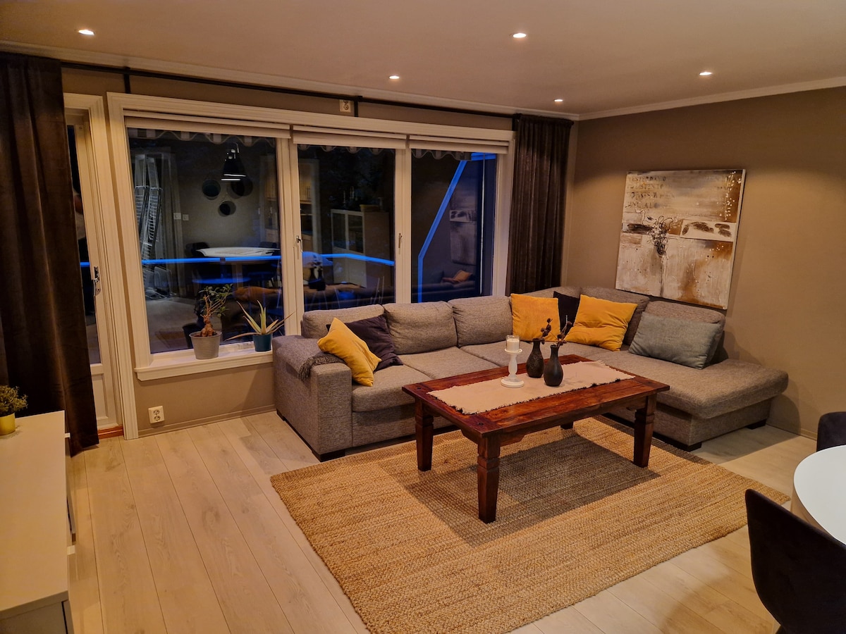 Well-equipped home with 4 bedrooms over 3 floors, centrally located in Kristiansand. This is an ideal place for those who want both comfort, space and a central location during their stay. It's a short walk to the city center, beach, shops and buss to the ZOO. Here you live in a quiet and safe neighborhood with free parking. The apartment is perfect for families, groups of friends, work groups. Nice view, with sun late into the evening.
