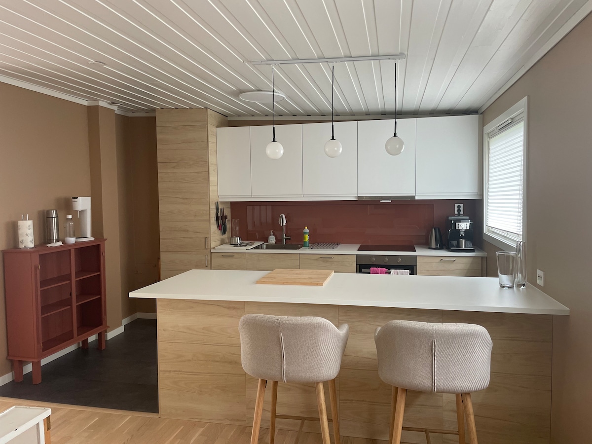 Stilren bolig med 4 sov,to bad, 8km fra bykjernen.