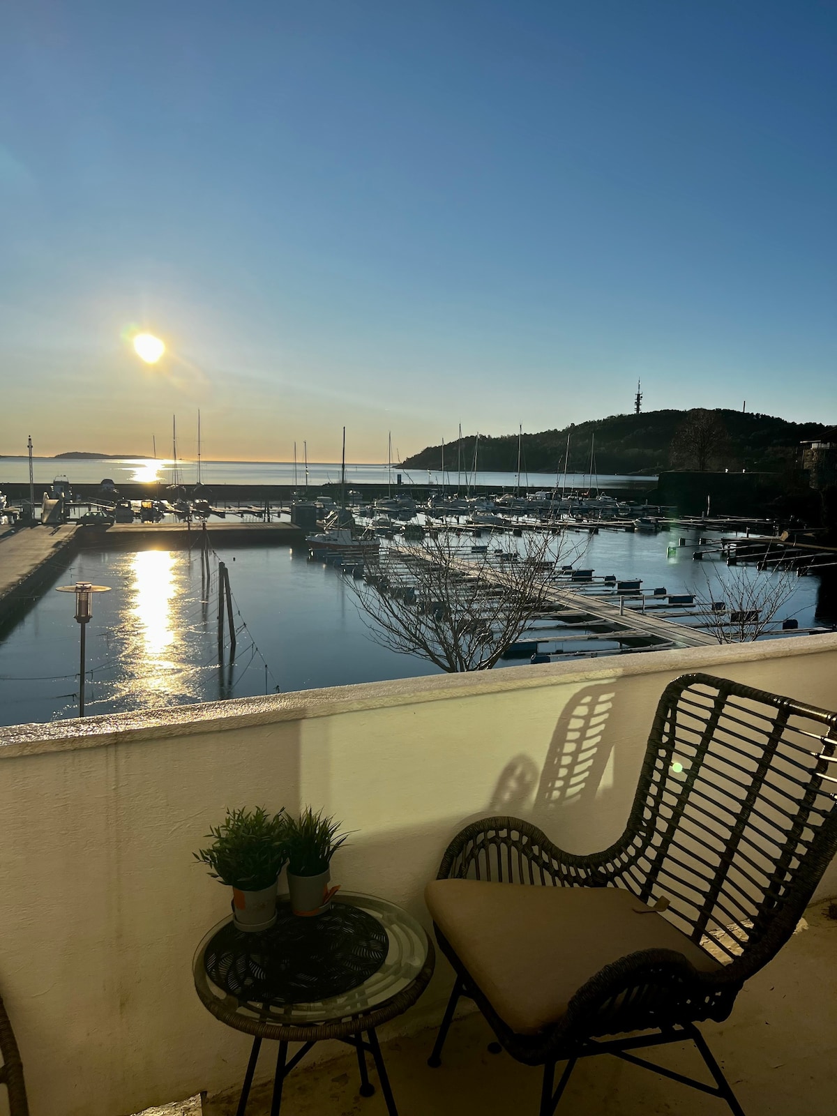 Enten har du et sted med sjøen, eller i sentrum. Her får du begge deler! Balkong på begge sider og lys inn fra 4 kanter! ☀️☀️ Bare 15 meter fra bryggekanten gjør at den er nærmest sjøen av alle leiligheter i kvadraturen. 🌊 Leiligheten ligger langs den bilfrie strandpromenaden. 🏝 Du nyte panoramautsikten av byfjorden, festningen og bystranda. Du ser ut på Grønningen fyr som møter horisonten ute i havet.🎣 Du ser også rett bort på det nye utendørsbassenget til Aquarama. 🏊♀️🏊♀️🏊🏊♂️