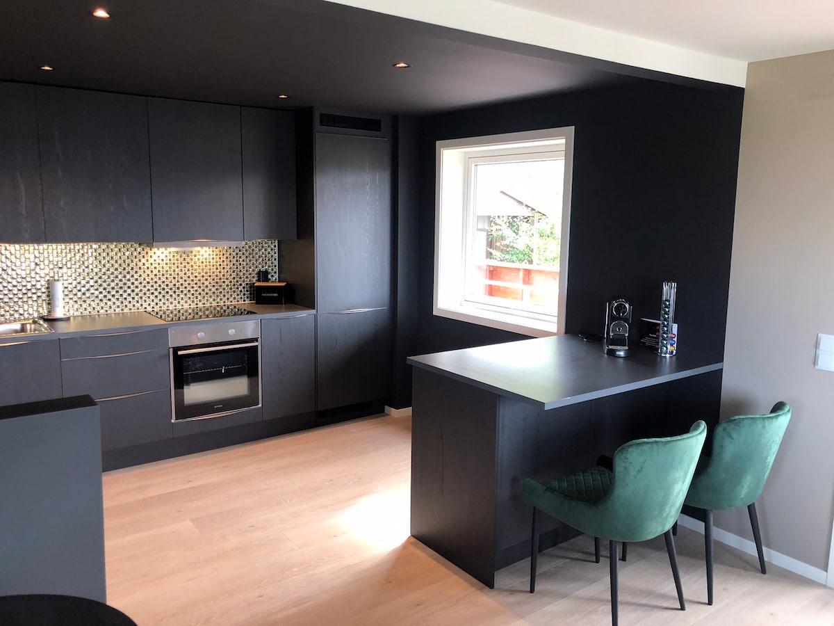 Kristiansund Luxury Apartment – Modern Comfort in the Heart of Town Stay in style at this newly renovated, high-standard apartment on Hauggata 12 in central Kristiansund. It offers a spacious living room, modern kitchen, two elegant bedrooms, and a luxurious bathroom with shower and jacuzzi. Enjoy a smart TV, air conditioning, balcony, and washer/dryer. Close to restaurants, shops, and the harbour — perfect for business or leisure stays with a touch of Scandinavian luxury.