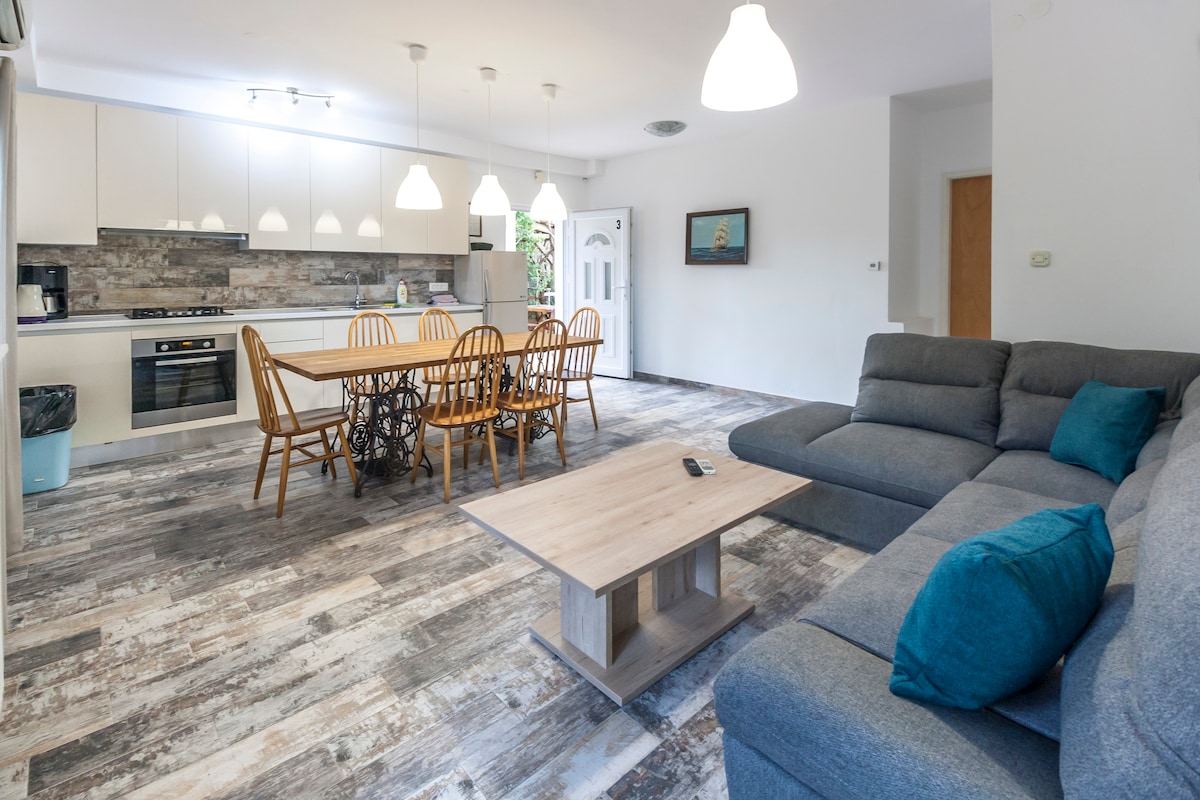 Apartments Nadia are located on the first floor of a family house. Recently furnished, modern apartment offers you comfort for a pleasant stay. There is an olive grove around the house where your children can play and a barbecue for shared use. On same floor is possible to book other apartment big terrace/sea-view. The beach is about 600m (air distance) from the house, with parking, natural surroundings and bar. I look forward to welcoming you in this modern and stylish apartment!
