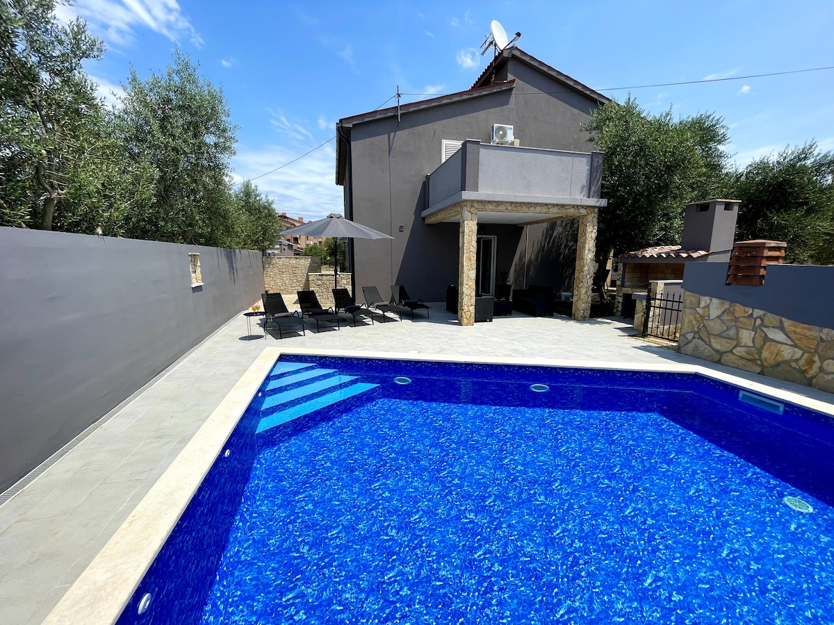 Vacation house Kate will enchant you with its fascinating sea view. You can enjoy the sea view while relaxing on the sun loungers. It is located 250m from the nearest beach. It can accommodate 5-6 people. The holiday home has a dining room, fully equipped kitchen, two bathrooms, two bedrooms and two terraces. There is also an outdoor grill. It is fully air-conditioned, each room has its own air conditioning and heating. Pets are welcome.