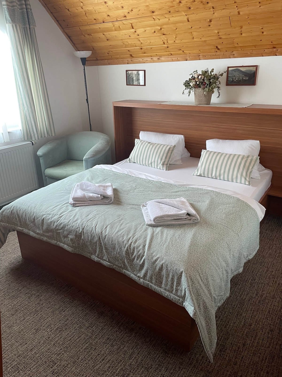 Komfortní ubytování v moderním horském apartmánu, který je součástí rodinného pensionu. Apartmán se nachází přibližně 12 minut chůze od centra města, 5 minut od nejbližších vycházkových či cyklistických tras a 10 minut od sjezdovek. Vybavení apartmánu: Manželská postel, jednolůžko a rozkládací pohovka pro pohodlné spaní Moderní koupelna s Walk-in sprchovým koutem a prémiovým sanitárním vybavením Jídelní kout Vybavená kuchyň Skříňky pro uložení oblečení LCD Televize Wi-Fi připojení