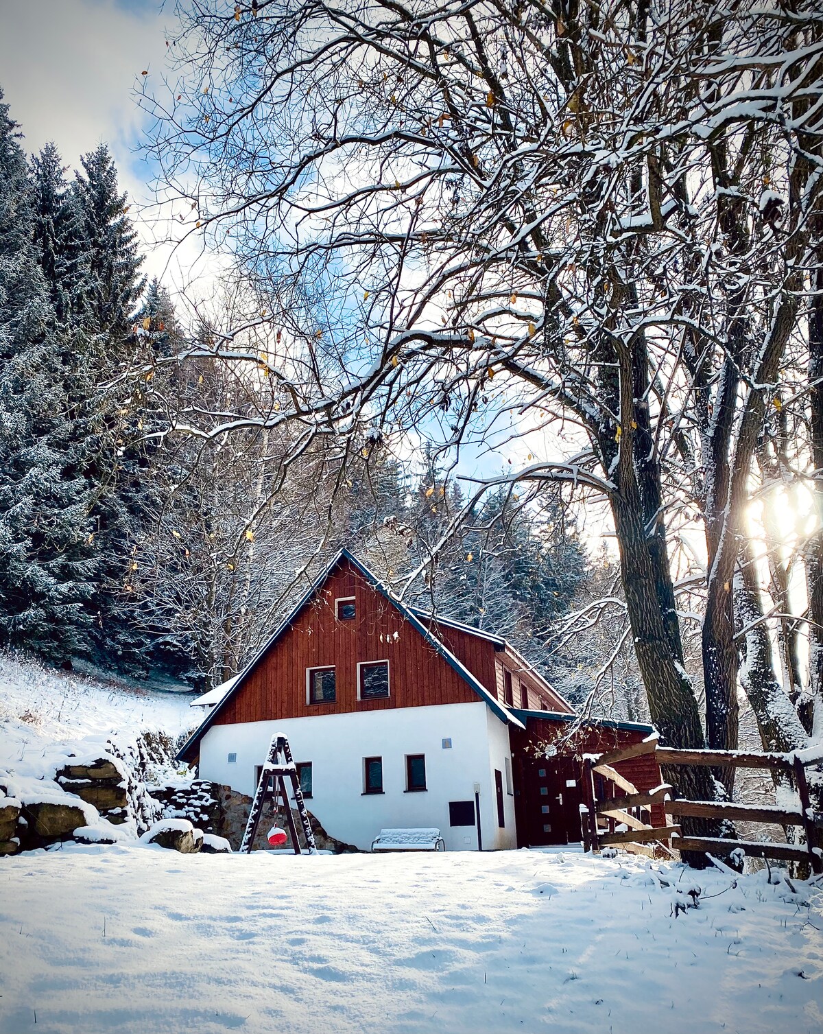 Chalupa se nachází v Jindřichově, v kouzelné oblasti Jizerských hor a je z obou stran obklopena lesy. Naproti je přírodní koupaliště a krásnou procházkou lze vyjít na rozhlednu Bramberk. První zmínky o stavení jsou z roku 1824, ale možná tu stojí ještě déle. My jsme tu strávili nezapomenutelné dětství, hledali skleněné poklady, sbírali borůvky, houby, lovili čolky a stavěli přehrady v potoce. Chalupu jsme nyní zrekonstruovali a chtěli bychom se s vámi podělit o krásnou atmosféru tohoto místa.