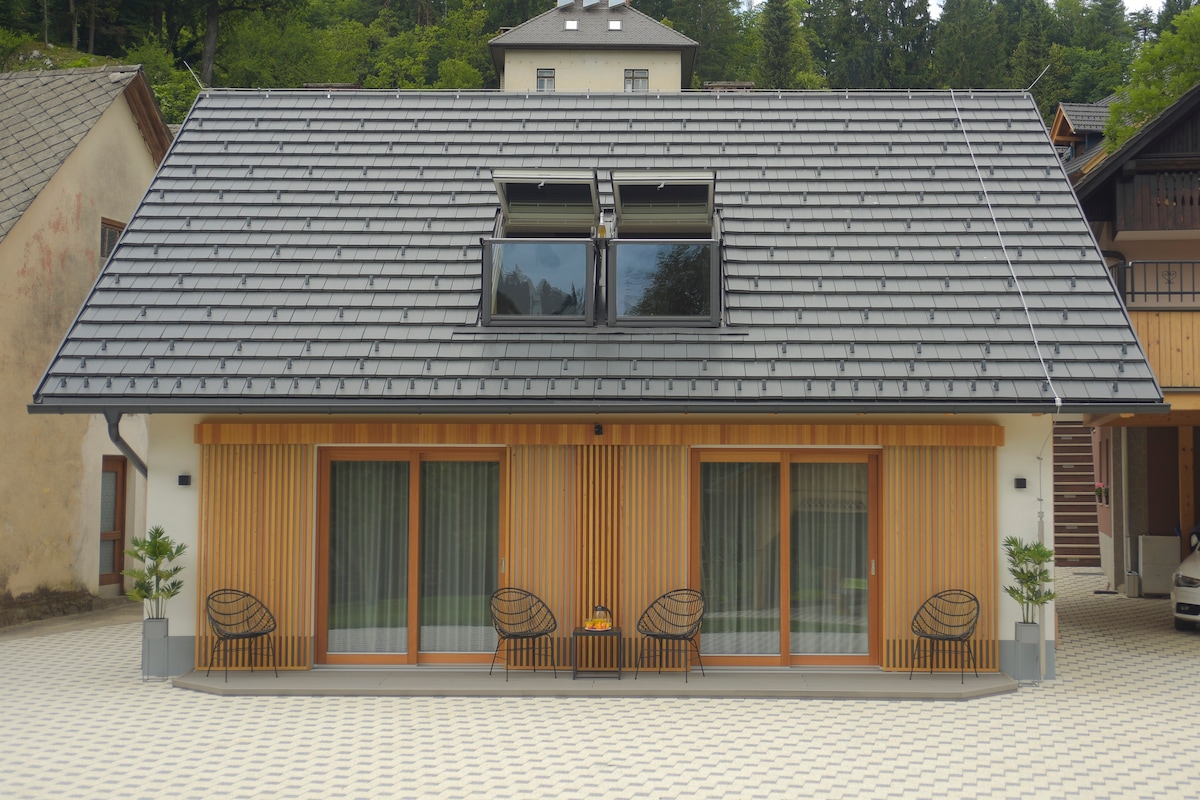 Peacefully set just a few steps from Lake Bled, the completely NEW Chalet Žana with apartments features breathtaking views of intact nature. Chalet Žana offers elegant eco apartments (solid wooden construction), furnished in modern minimalist style. The wooden interior with panoramic floor-to-ceiling windows overlooks the impressive landscape.