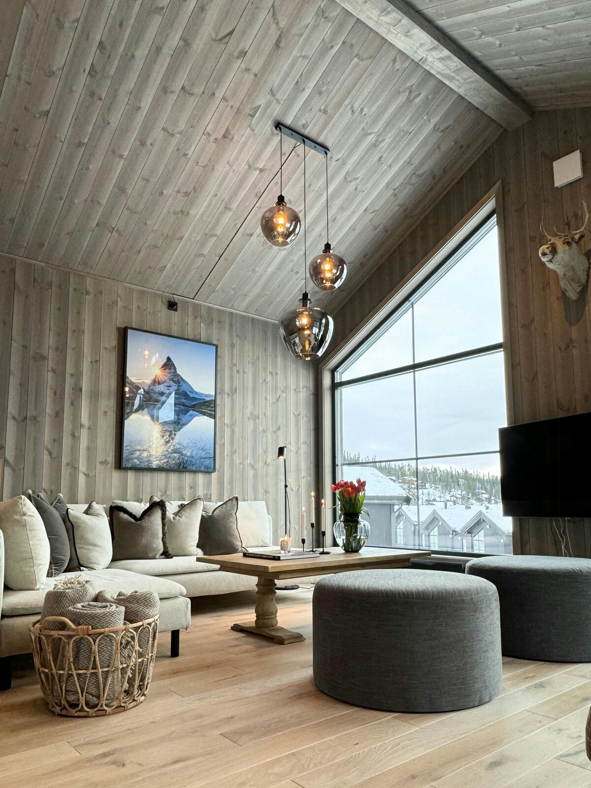 Christmas 2025: available 18-28 Dec Carport w/ EV charging incl. Luxury 61m2, 3-bedroom penthouse & corner flat, completed Nov 2022, in the centre of Norefjell ski resort w/ ski-in ski-out. Ceiling height of 4.5m in classic chalet architecture. Floor-to-ceiling windows & balcony with 180 degrees unobstructed vistas of the mountains and valley. Underfloor heating, warm on arrival. Custom-made beds, wardrobes in all bedrooms with premium mattresses, duvets, bed linens. Well equipped kitchen.