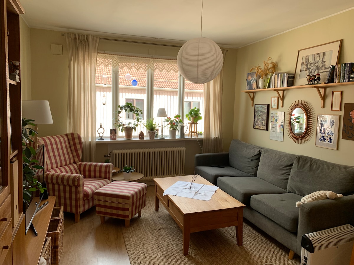 Cozy two-bedroom, 2nd floor flat with nice views • Quiet residential area a few minutes from Sahlgrenska Hospital and a short walk from Botanical Gardens, Chalmers and Linnéplatsen • Large nature reserve around the corner with jogging, hiking and biking trails • WIFI (250 Mbit/s) • Good bus communications to city center, Liseberg, Mässan, Skandinavium, Ullevi (all 10-15 min). Bus stop is 10 min. away (rather steep uphill walk to the house) •. Host lives on 1st floor • Parking on property