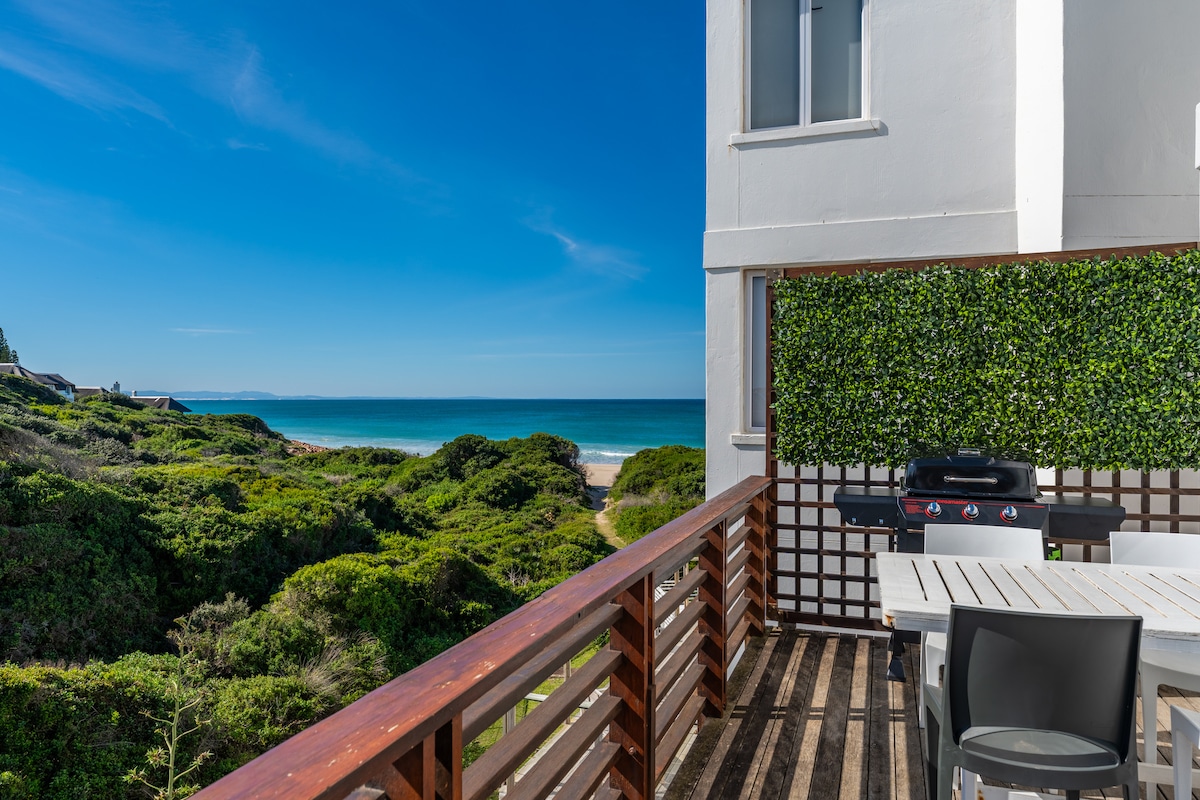 The first time we walked up the stairs and saw Jeffrey's Bay stretching in front of us, our hearts sang. After ten years of dreaming and two years of planning we finally created a modern beach front house by the surf. 127 de Gamma is built with a European style but an African heart. Whilst the bedrooms are downstairs, the open plan upstairs is all about the view. With the on-going saga of loadshedding we have just added solar and inverters to ensure you have a great stress free stay.