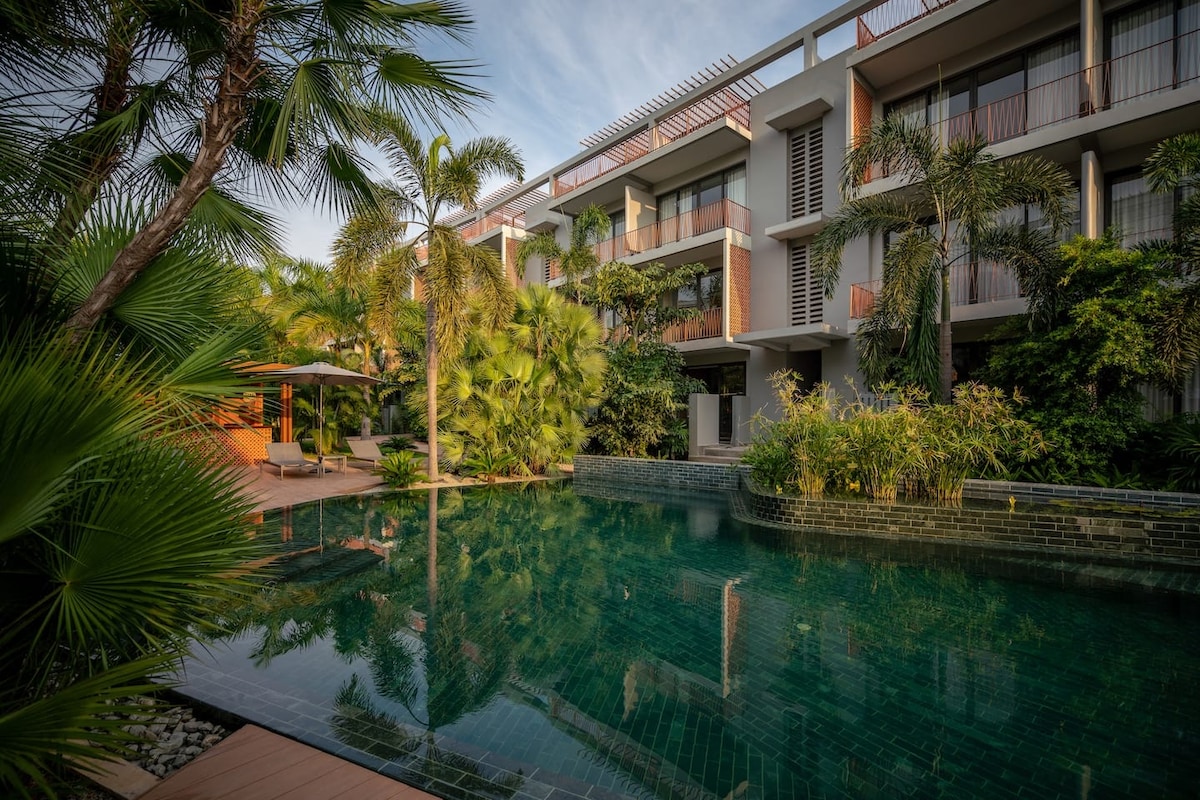 全新|明亮2卧室公寓;泳池、咖啡馆