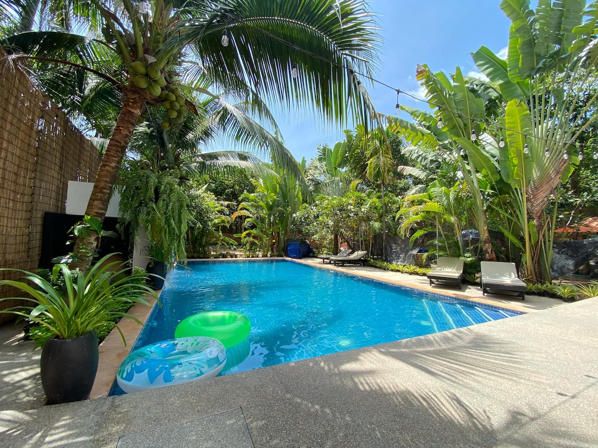 ➤ Wat Bo House: Tranquil Khmer Villa with a Private Nature Pool in a Tropical Garden! ★ Discover a haven where tradition meets modernity, providing a serene escape in the heart of Siam Reap. Immerse yourself in a Cambodian life! ★ Vibrant Neighborhood: Only a 10 minute stroll Or a quick 3 min tuk-tuk ride to Old Market, Pub Street, & Night Market. ★ Angkor Wat: 15-20 mins Tuk Tuk to Angkor complex ★ Area: Quiet, private & safe, adjacent to the oldest pagoda in town We organize Angkor Tours.