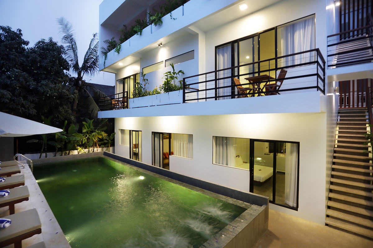 jolie petite villa designée par un architecte Français située non loin du centre environs à 7 minutes en Tuk Tuk , dans un endroit calme . Elle dispose de sa propre petite piscine privée et une femme de ménage est a votre disposition. Joliment décorée et bien équipée avec ses 2 chambres chacune sa salle de bain et wc privée un séjour , une cuisine et terrasse vous vous sentirais comme a la maison. Romain ce fera un plaisir de vous conseiller pour sortir, et d'organiser vos excursions.