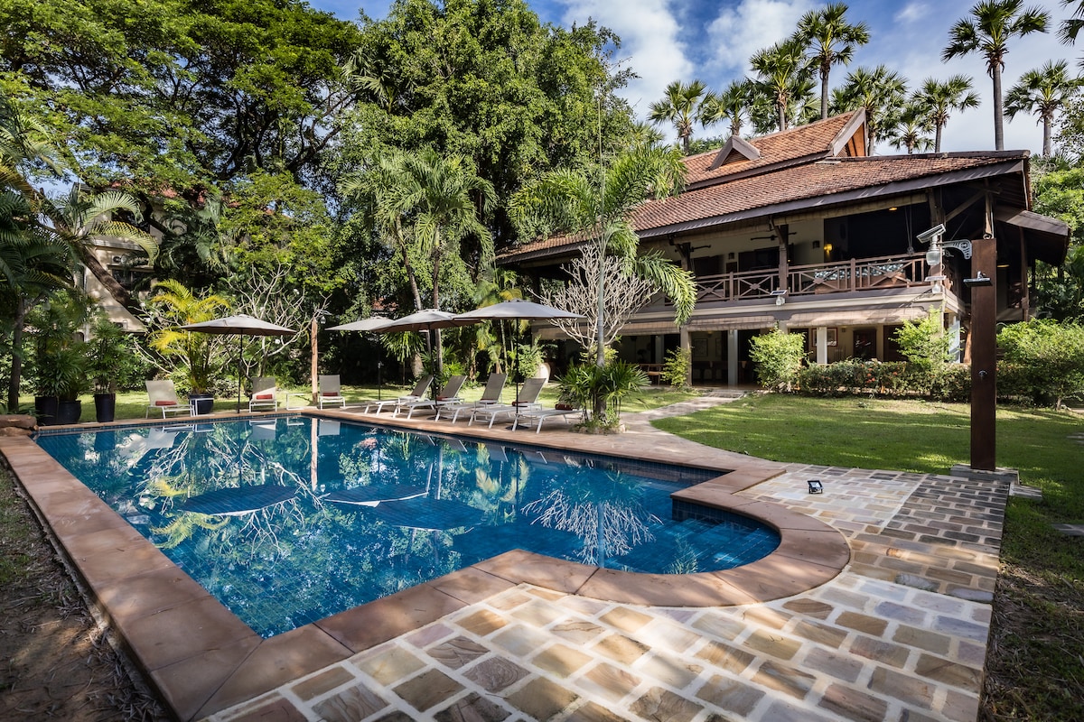 Sok Villa is a luxurious complex of 6 Khmer houses with modern amenities in a large 2,000m2 (21,528 ft2) private property with a lush tropical garden and swimming pool. Located in a quiet and safe area just a 5-minute drive away from Old Market and the nightlife hubs, Sok Villa is perfect for large families or groups of friends who want a peaceful and private place to stay with easy access to the city. There is also a 24-hour reception and security service, and a private car/van parking.