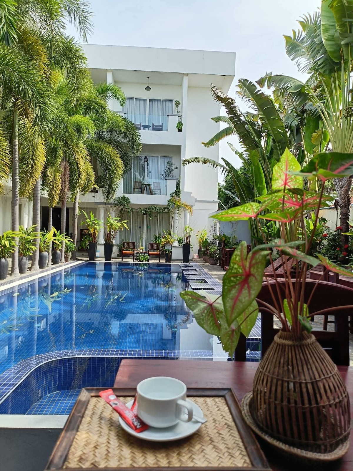 Runned by a cambodian family. In a tropical garden, property of 9 private villas offering an outdoor pool. Carving gallery as reception. A very quiet place, even just 250m from Old Market. We propose breakfasts by ordering to local businesses (fruits, pastries, omelettes, rices... ). Airconditioning, free WiFi access, spacious bathrooms, free toiletries, hairdryer and bathrobes. Linens and towels can be changed upon request We also can assist with ticketing and tour arrangement.