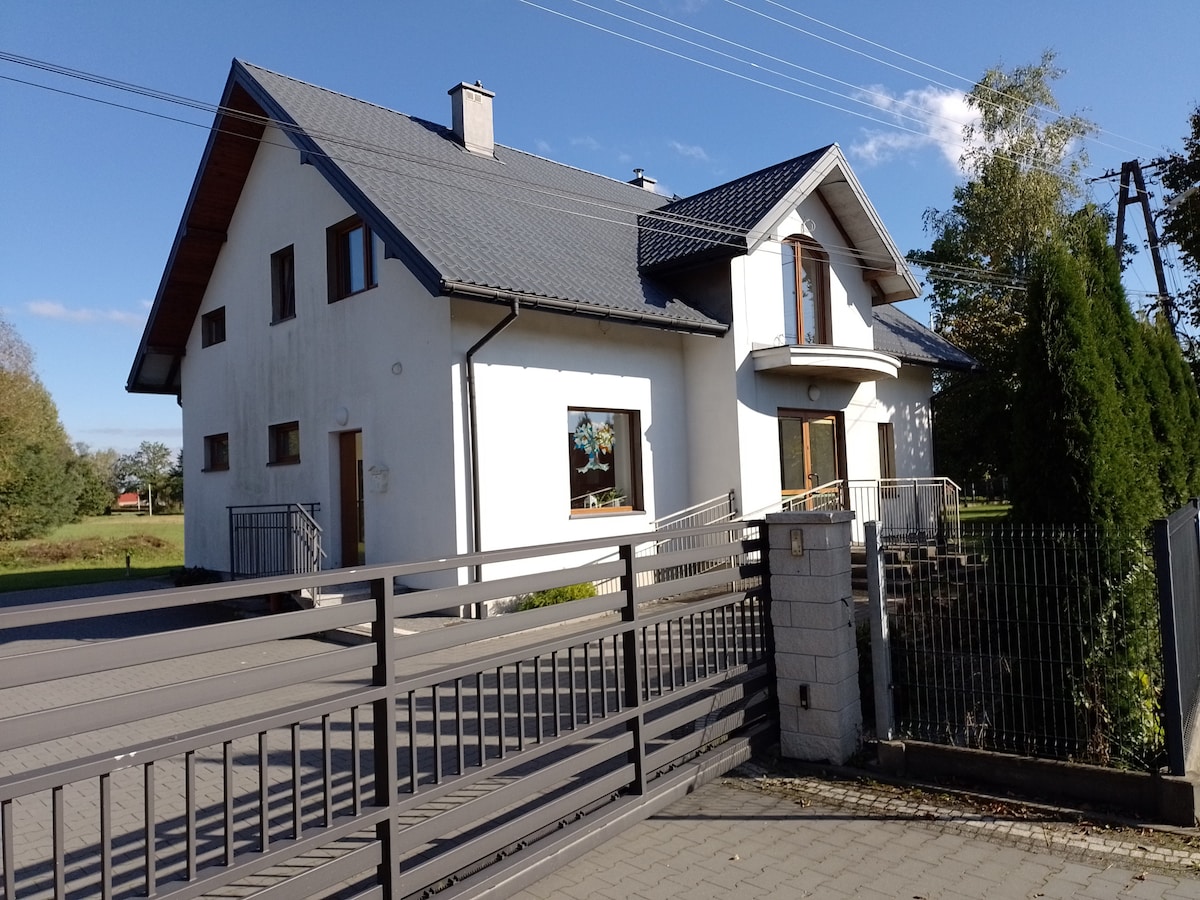 Come enjoy a peacefull weekend or week at our cozy family home in the outskirts of Krosno buses close that will get you to the center of Krosno also only a 10 minute drive. This is a free standing home with alot of trees that give alot of privacy enjoy our huge fruit trees and bushes in the summer. It is 4 bedroom with a large living room kitchen and eating area 2 bathrooms downstairs standing shower upstair jacuzzi, balcony’s in every room.