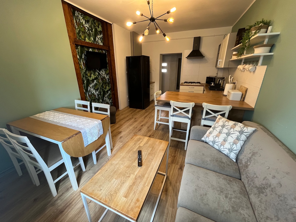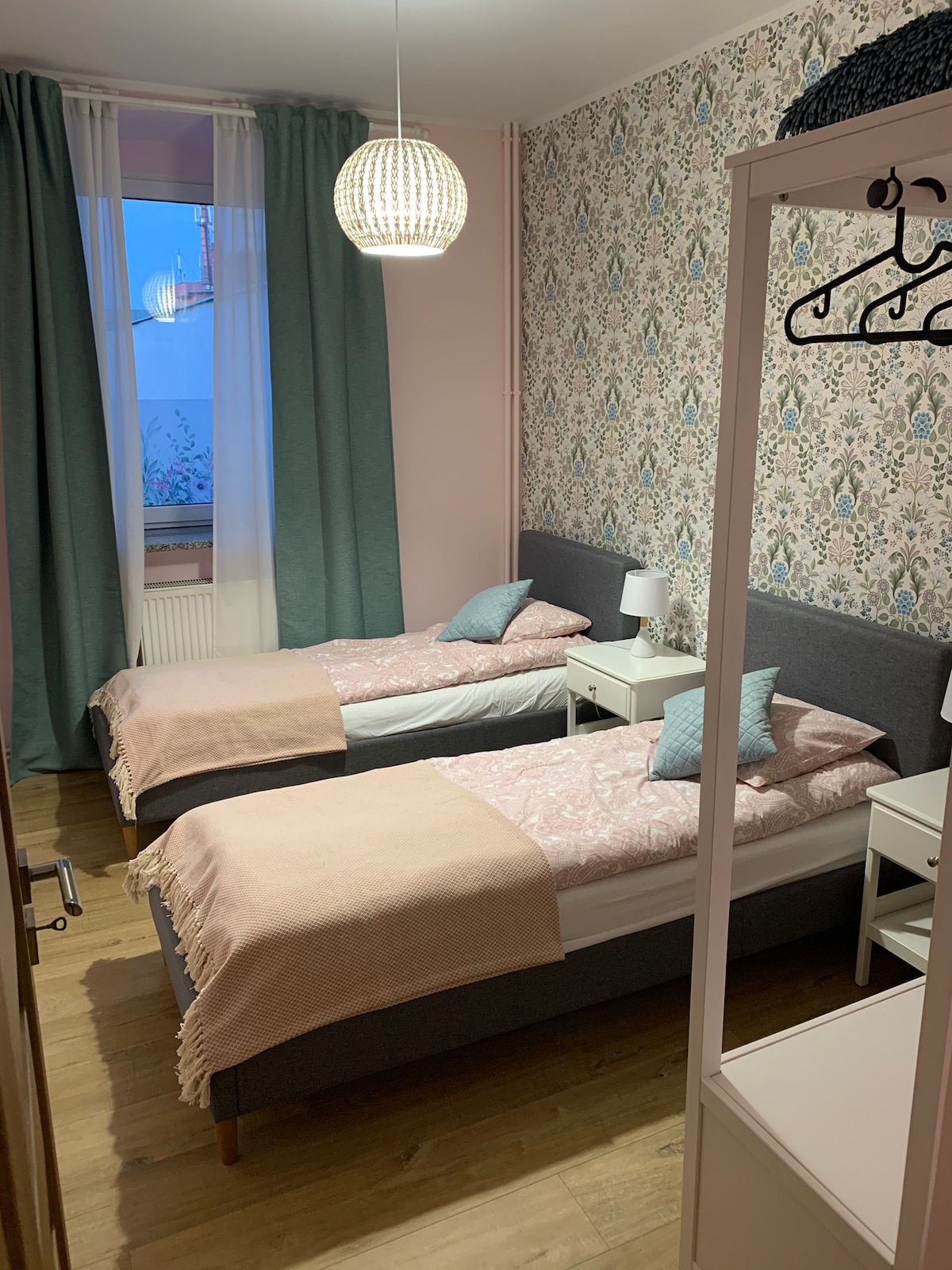 Stylowe miejsce na pobyt w samym centrum Krotoszyna. 5 minut od rynka i 2 minuty od parku również 2 minuty od sklepu spożywczego. Mieszkanie ma dwa pokoje (sypialnia i tv pokój z rozkładaną kanapą ze świeżą pościelą). W sypialni znajduje się łóżko i w tv pokoju znajduje się łóżko rozkładane/kanapa. Jest telewizor i dostęp do wi-fi. Jest jedna łazienka z prysznicem. Kuchnia jest wyposażona.