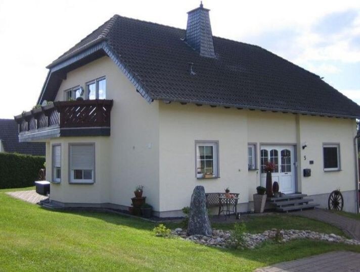 The wooden house is suitable for families and friends with up to 10 adults. The accommodation is located between the "Maare" (volcanic lakes) in the Volcanic Eifel near the Nürburgring and offers: Sauna for 5 people, 2 winter gardens, one with a pop-up pool, outdoor wood heated hot tub, fire pit, play area, trampoline, fitness equipment in the house, table soccer, table tennis in the large double garage, Netflix, wallbox for electric cars. 2 baby travel cots and 2 high chairs are available.