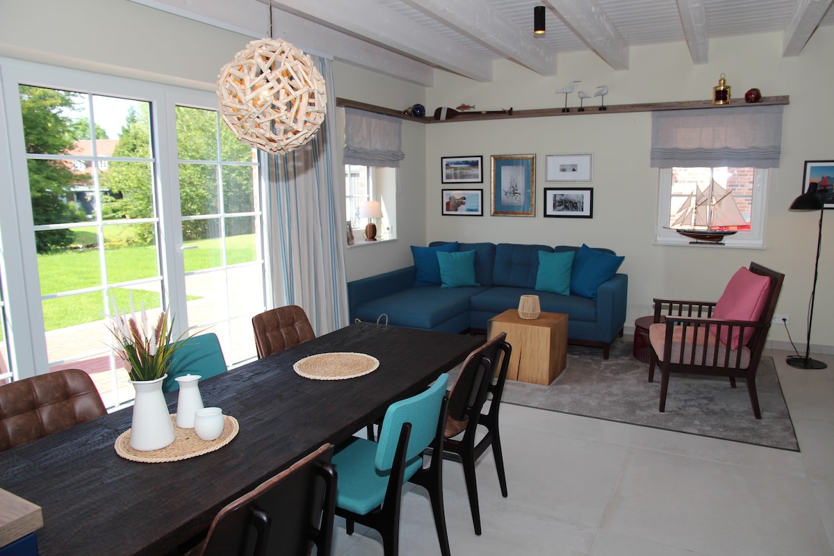 The holiday home "Up Besöök"was rebuilt in 2020 in the quaint town center of the Warfendorf Upleward. The house is equipped with a smart home system, which makes the vacation even more pleasant and interesting.The " Magnolie" apartment is on the ground floor ofthe house and offers very high qualityfurnishings. The living and dining area offers space to cook and eat together or relax on the comfortable sofa with a good book or a nice movie on the OLED SmartTV.When the weather is nice, you can enjoy yourself on the sunny terrace, which can be accessed directly from the living room. Furthermore, the highlight ofthe apartment is in the garden , a private Swedish sauna. So you can warm up in your private wellness oasisafter a winter walk in the cold season. The apartment offers 2 bedrooms, one with a double bed (160x200)and one with two single beds (90x200). Both bedrooms are equipped with a Smart TV, wardrobeand extra large duvets (155x220). In the bedroom with a double bed, electrically adjustable slatted framesoffer the desired level of comfort.The bathroom in the Wildrose apartment has a walk-in shower, hairdryerand heated towel rail. A washer-dryeris also available in the apartment. A parking spaceis available for you free of charge directly at the house, and bicyclescan also be safely parkedand chargedin a separate bicycle shed. The "Up Besöök" is located in the Krummhorn village of Upleward, from here it is only 2 km to the dry beach, there is a swimming areabehind the dikeand a nice playgroundfor children. For more information about Upleward and the Krummhörn, please clickde/de/1861791/upleward"> here.