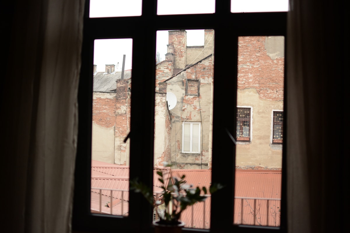 Nestled in the heart of the city, apartment is set in a peaceful inner courtyard close to the main attractions away from the noise of busy streets. A perfect choice for guests who want to stay near vibrant city life while enjoying a calm atmosphere at home. The apartment offers stable fiber-optic Wi-Fi with backup power. The building is historic, over 120 years old, with charming wooden stairs (3rd floor, no elevator) and an authentic Lviv courtyard shared with local residents and friendly cats.