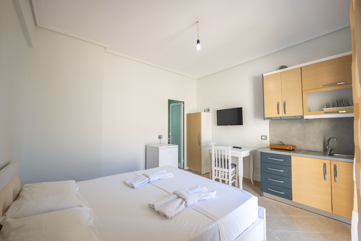 Enjoy a cozy and bright room just 2 minutes from the beach! The room features a comfortable double bed, private bathroom, air conditioning, mini fridge, washing machine, free Wi-Fi, and on-site parking. Relax in the peaceful area with outdoor seating, perfect for morning coffee. Shops, restaurants, and the beach are within walking distance. We’re always available for tips or assistance during your stay.