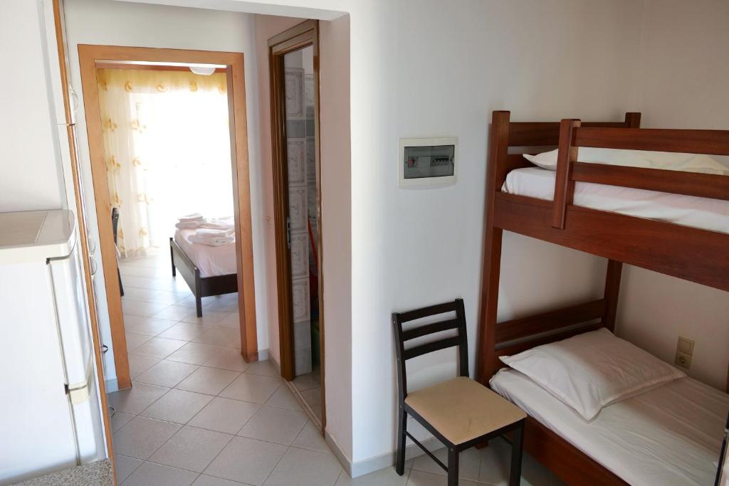 Our brand new suite, very close to the beach.Suitable for 4 people. Equipped with a kitchen, 1 double bed, one single bed and a retractable single bed. Inside you can find a well equipped kitchen, a smart TV, free WiFi, air-conditioner, hair dryer. There is a barbecue outside and a laundry room.