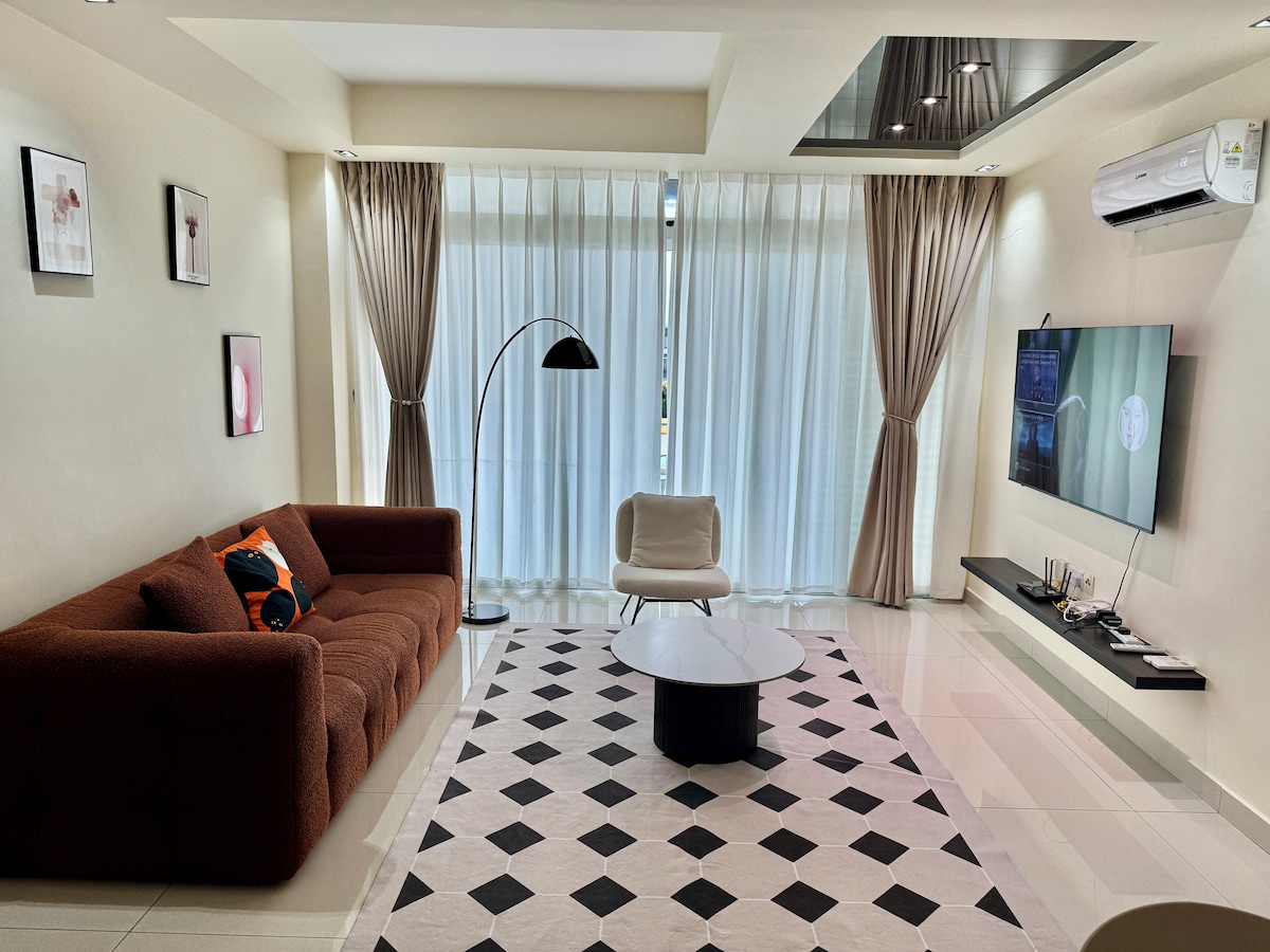 Private Luxury Suite | Walk to KSL Mall • Walking distance to KSL Mall • MUJI-inspired minimalist design • Private Jacuzzi for relaxation • Immersive cinema with surround sound • King-size bed with 12-inch premium mattress • Plush high-end sofa Designed for comfort, privacy, and quiet luxury. Ideal for couples, special occasions, or guests seeking a refined and uninterrupted stay in the heart of Johor Bahru.