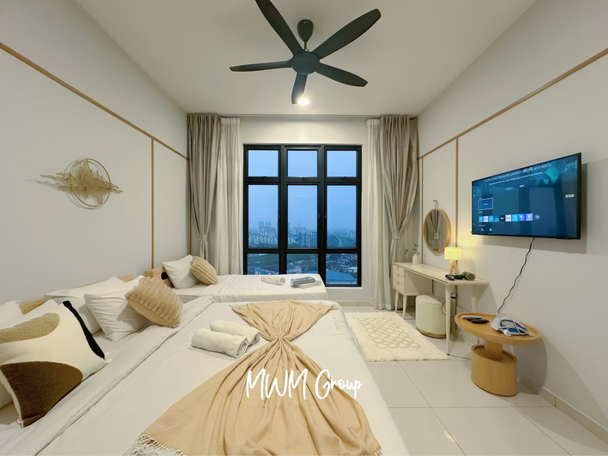 Luxurious spacious 3-Bedrooms unit with Bathtub! Premium quality King & Queen size Beds that guarantee good sleep here with amazing Midvalley Southkey Mall view! Main Highlight! -Private Bathtub -65" Smart TV with YouTube and Netflix apps -Pool Table -Retro Game Console -Drinking water Dispenser Surround with shopping mall & wide range of local tasty food - 2 mins drive to Midvalley Southkey JB - 5 mins to KSL City Mall - 8 mins to City Square Mall & Custom JB