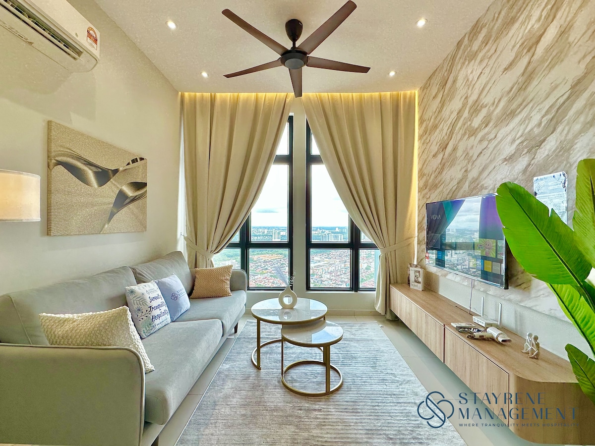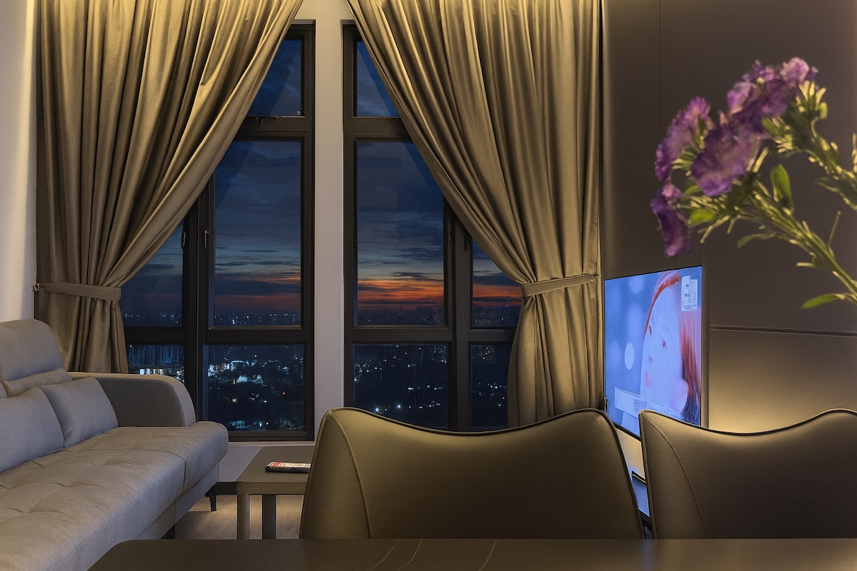 Private Luxury Suite | Walk to KSL Mall • Walking distance to KSL Mall • MUJI-inspired minimalist design • Private Jacuzzi for relaxation • Immersive cinema with surround sound • King-size bed with 12-inch premium mattress • Plush high-end sofa Designed for comfort, privacy, and quiet luxury. Ideal for couples, special occasions, or guests seeking a refined and uninterrupted stay in the heart of Johor Bahru.