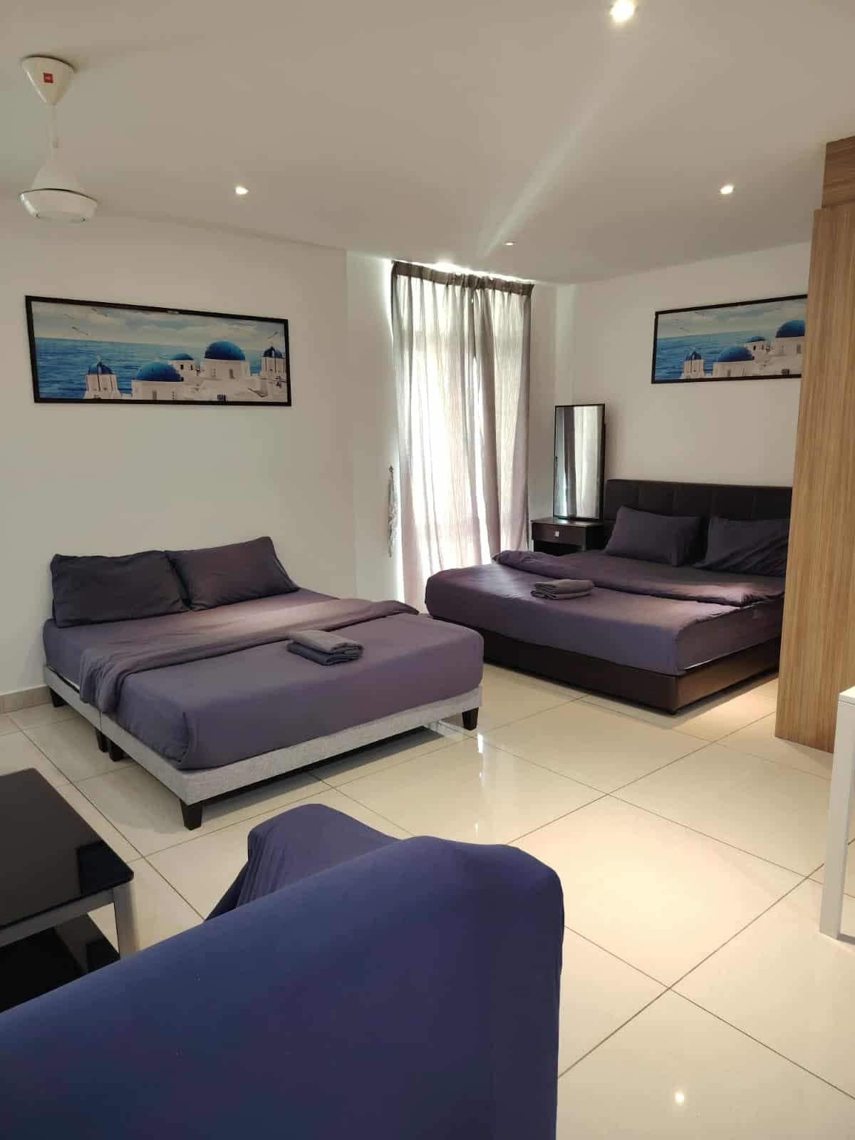 Designing with grey and purple in mind, Posy Home was finally emerged in mind for family and friends for a holiday. Spacious, comfortable and beautiful with private lift and a spectacular view for family to spend time together. Forget your worries in KSL City Mall with shopping, food, massage, Karaoke, hairdressing and nail polish. Dinosaurs Theme Park with big swimming pool for children to remember as their childhood holiday fun. Even a day or 2 is not enough.