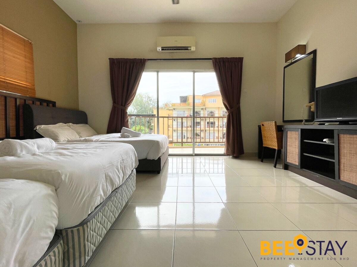 A fully furnished Themepark View Studio located at:- Gold Coast Morib International Resort, PT. 294, Kawasan Kanchong Laut Mukim Morib, 42700 Banting, Selangor It is handled by a professional management company that provides Short-Term and Mid-Term Rental to the public. Feel free to send us a message should you have any questions. Thank you.