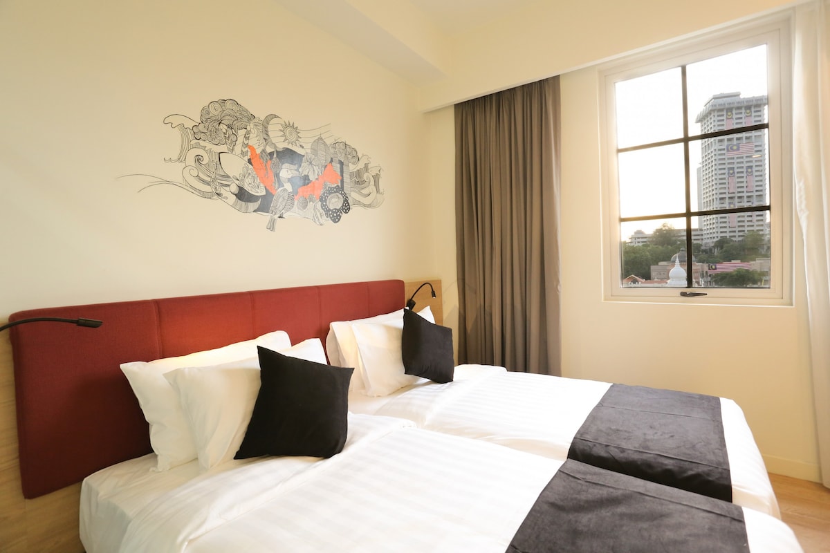 Spacious and comfortable 2 TwinBed Studio/Hotel unit with KL Tower View & Free Parking! Each unit comes with ONE free parking lot and unlimited access to the GYM and the Skypool. 1.~10 minutes walking distance to KLCC and KL Tower! 2.~5 minutes walking distance to Dang Wagi LRT and Bukit Nanas Monorail Station for easy travel to anywhere in the Klang Valley! **POOL CLOSURE ON 22/10/2025 FROM 9AM - 1PM**