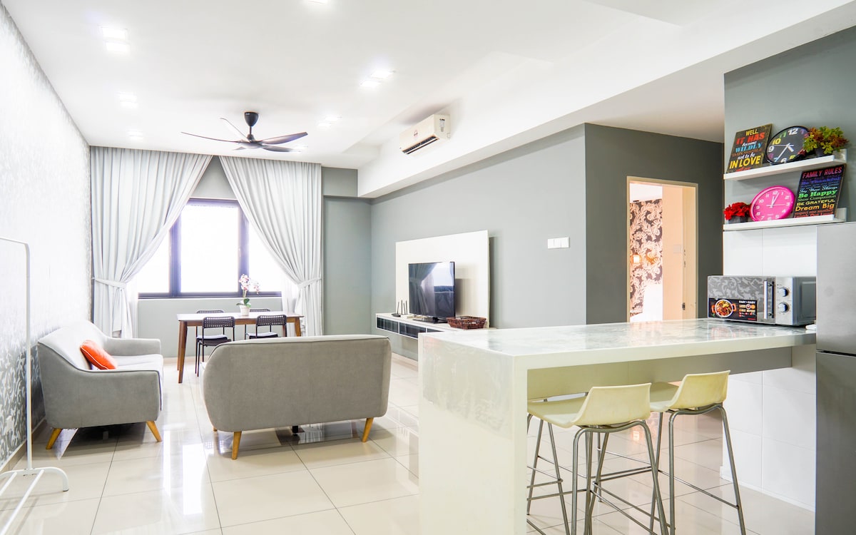 我是中英文房东 Modernise 3 Bedroom Condo. Tasteful fully-furnished for Family, leisure or business traveler. We are located in the Heart of Kepong which is the Mature Township come with lot Amenities include Shopping Mall (Aeon & Aeon Big, Tesco), Restaurant,gather lot famous Restaurant with Great Food Covid SOP By Gov - All adult guest must be fully Vaccinated -Booking person takes full responsibility to ensure other guest compliant to SOP - Guest with covid Symptom shall not enter the permise