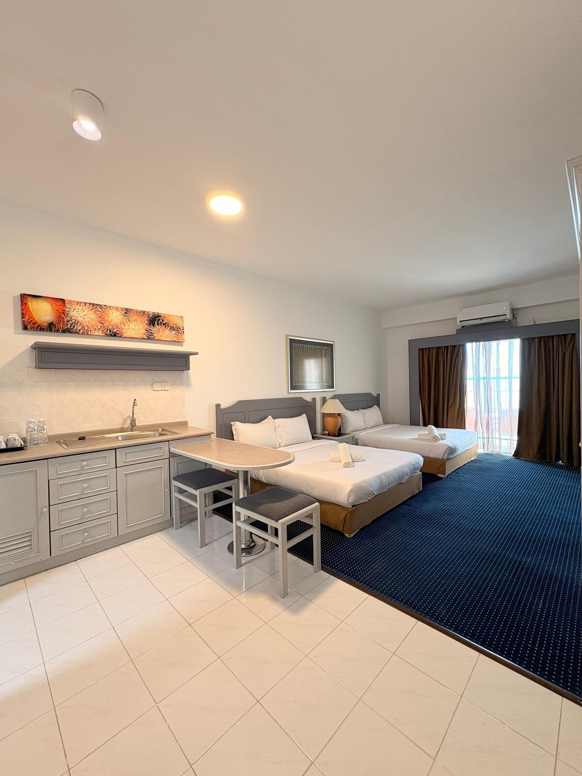 Our most popular and top-rated 2-bedroom Jazz Suite offers a comfortable and reliable seaview stay loved by many returning guests. Situated on a high floor, the unit is breezy, bright, and well-maintained—perfect for both short and extended stays. After a day of exploring Penang, unwind in the bathtub and enjoy complimentary access to the shared sauna and swimming pool. This unit is known for its balance of comfort, location, and value, making it a trusted choice for first-time.