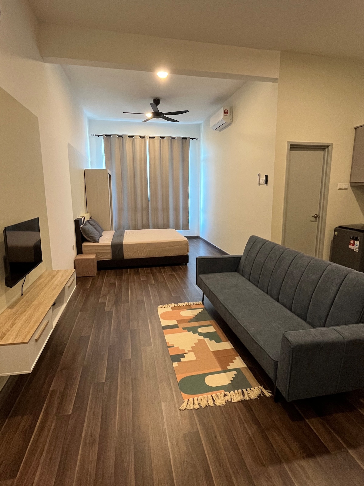Luxury and cozy studio located in heart of the city close enough to the most lively spot in Kuantan. A best place to stay whether you come for leisure or work purpose. This living area offers a cozy space to relax with a 43" TV with 4k Netflix and Walking distance to TARC college Driving distance: > 5 min to UIA , IIUM >5 min to Kuantan Medical Centre (KMI) >10 min to Pusat Bandar Kuantan >15 min to tol Kuantan >15 min to Airport Kuantan >15 min to Gebeng Industrial >20 min to Teluk Chempedak
