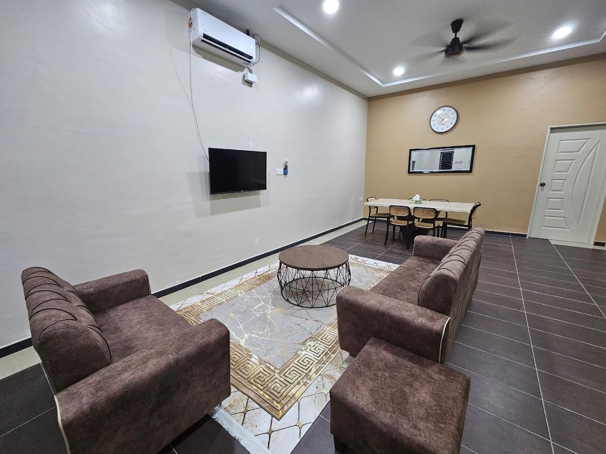Kuantan Homestay Best Facilitiy Wifi BBQ Viu @ Zaryqa Guest House provides accommodation in Kuantan with free WiFi, Viu Broadcast and BBQ Room. This holiday home features free private parking and a shared kitchen. The air-conditioned homestay consists of 3 bedrooms, a living room, a fully equipped kitchen with a fridge and a kettle, and 2 bathrooms with a bidet and a shower. The holiday home also offers a seating area, a washing machine, a dryer and 2 bathrooms with a hairdryer.