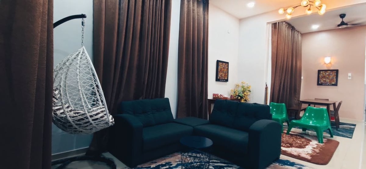 Waez Lodge@TimurBay Residence nestles on the panoramic view of Balok Beach, Kuantan. With seafront and pool view, it's a perfect beach getaway for small group of family and friends. Located in Sg Karang neighborhood where guests can enjoy local delicacies such as nasi dagang, keropok lekor and mee calong. Imagine waking up to the scenic sunrise and greeted by the sound of ocean waves from your bed! Experience a cozy home with host's personal touch, complemented by resort themed amenities.