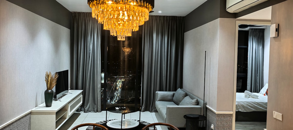Sit back and relax in this calm, stylish space. Why Seashell suite at Lucentia Residence - Best views of KL - Beautifully decorated with a fun spirit - Centrally located & attached to public transit hub - Fast wifi - 2 TVs with Netflix & others - 2 gorgeous pools - Family friendly with baby crib & highchair - Gym, pool table, BBQ pits, piano - Garage parking - Recommended to Sleeps 6, max 8 person - LaLaPort Shopping Mall & the WOW entertainment street are attached - Grocery, drug store & Cinema