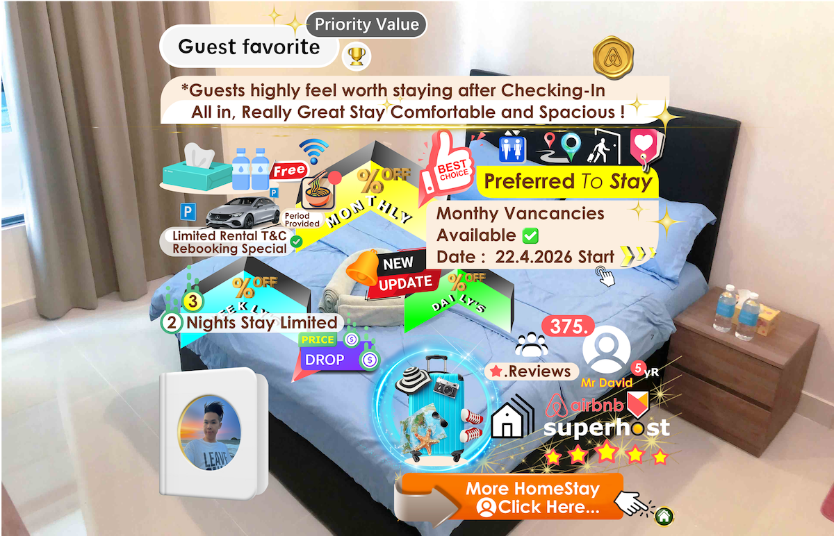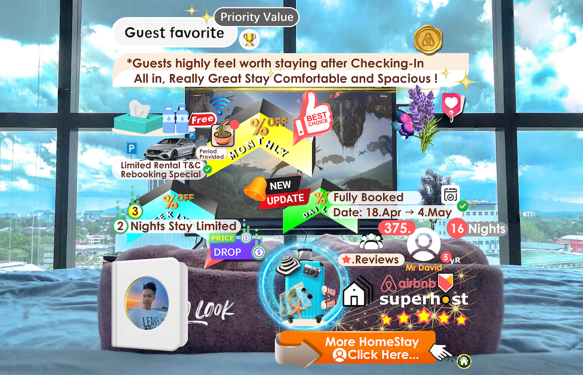 My homestay is located at very strategic location (Boulevard shopping mall), which is nearby airport, bus terminal, shopping malls & major tourist attractions. Therefore, my homestay is suitable for business travelers, couples, and travel with friends & families Guests are able to access swimming pool, gym, sauna, steam bath, shopping & eating places. Please enjoy your trip & stay in my homestay, and at the same time, explore Kuching’s must-go attractions; Sarawak cultural village, etc.