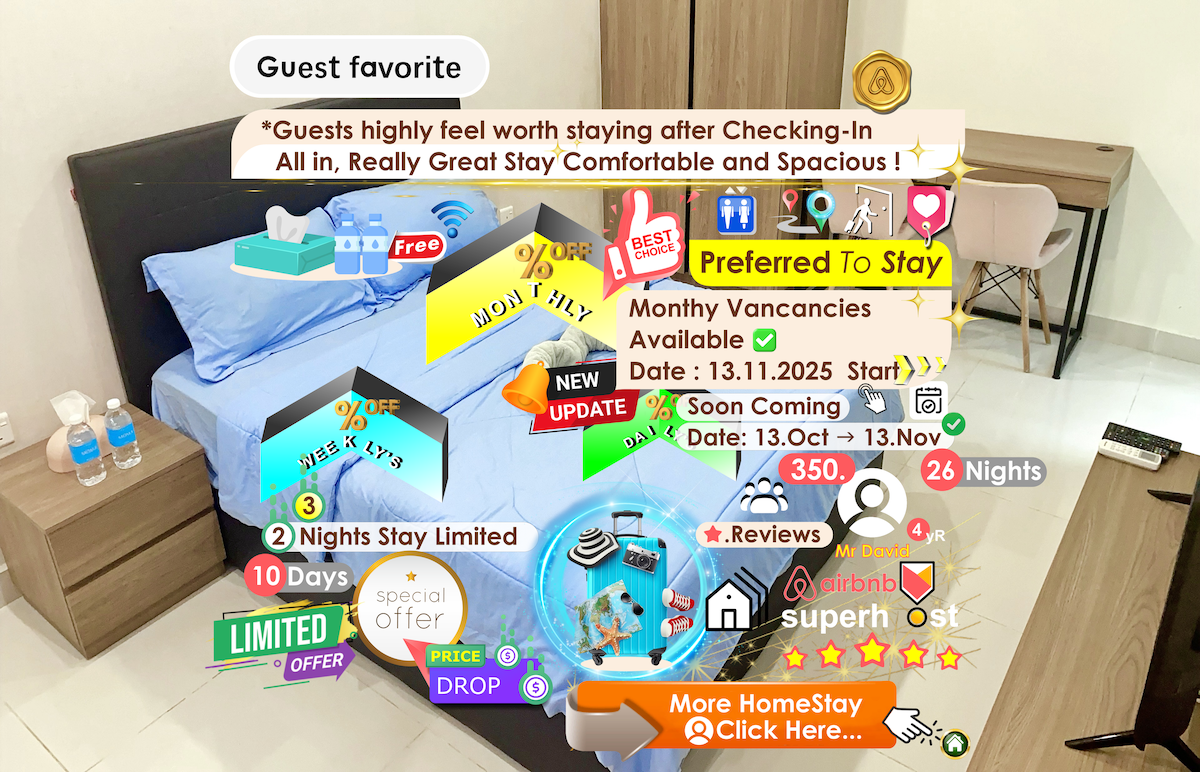 Forget worries in this spacious and serene space of muji style home stay at 12 level. ✅Unique & beautiful high sky, sunset, city view & peacefully quiet place. ✅Handpicked most comfortable bed no other homestay could provide. ✅Relaxation fun stay. ✅10 minutes drive to town. ✅15 minutes drive vivacity. ❌No parking lot. For security purposes. A photo of your identity card is required.