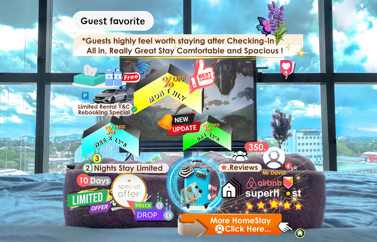 My homestay is located at very strategic location (Boulevard shopping mall), which is nearby airport, bus terminal, shopping malls & major tourist attractions. Therefore, my homestay is suitable for business travelers, couples, and travel with friends & families Guests are able to access swimming pool, gym, sauna, steam bath, shopping & eating places. Please enjoy your trip & stay in my homestay, and at the same time, explore Kuching’s must-go attractions; Sarawak cultural village, etc.