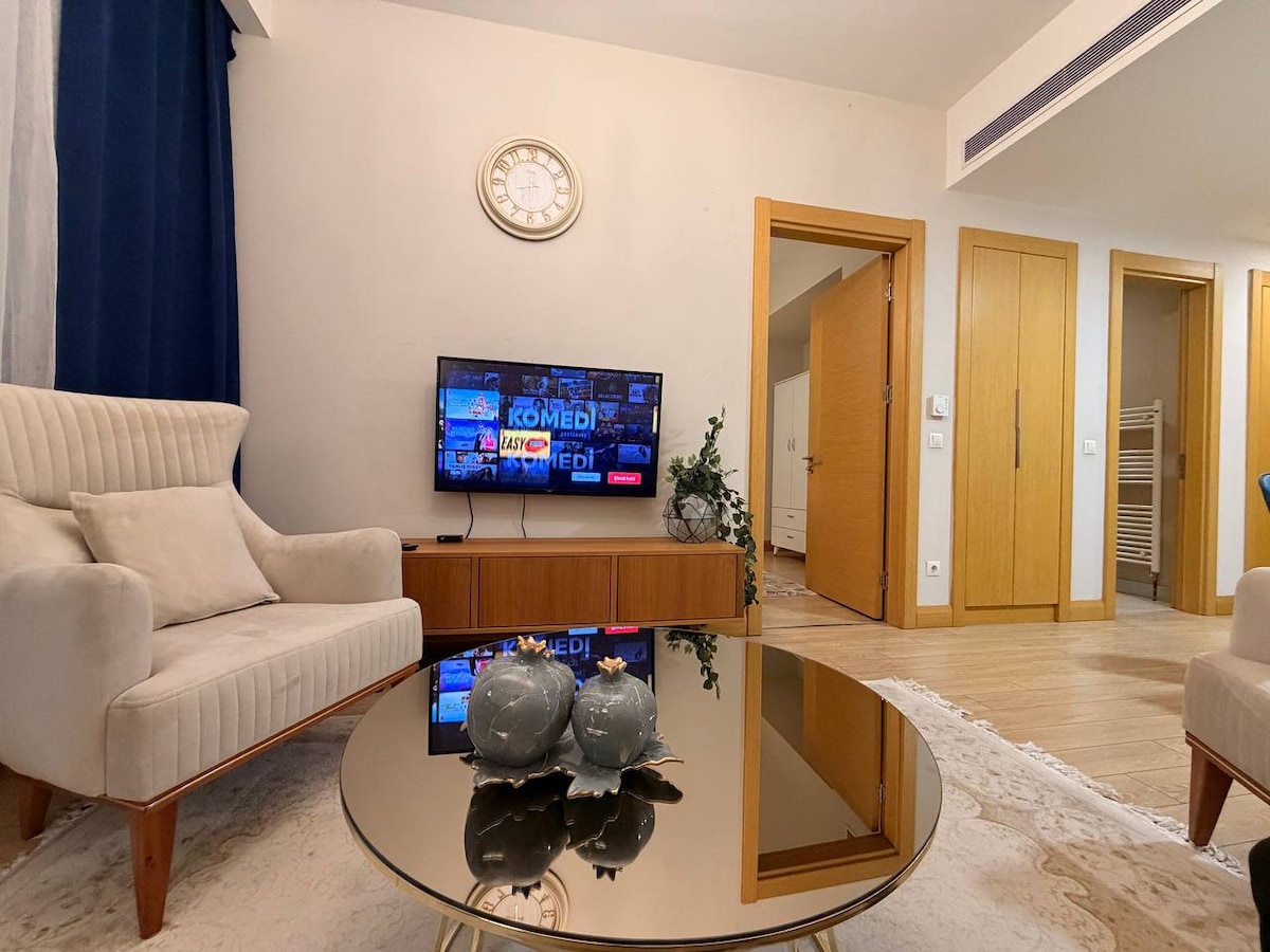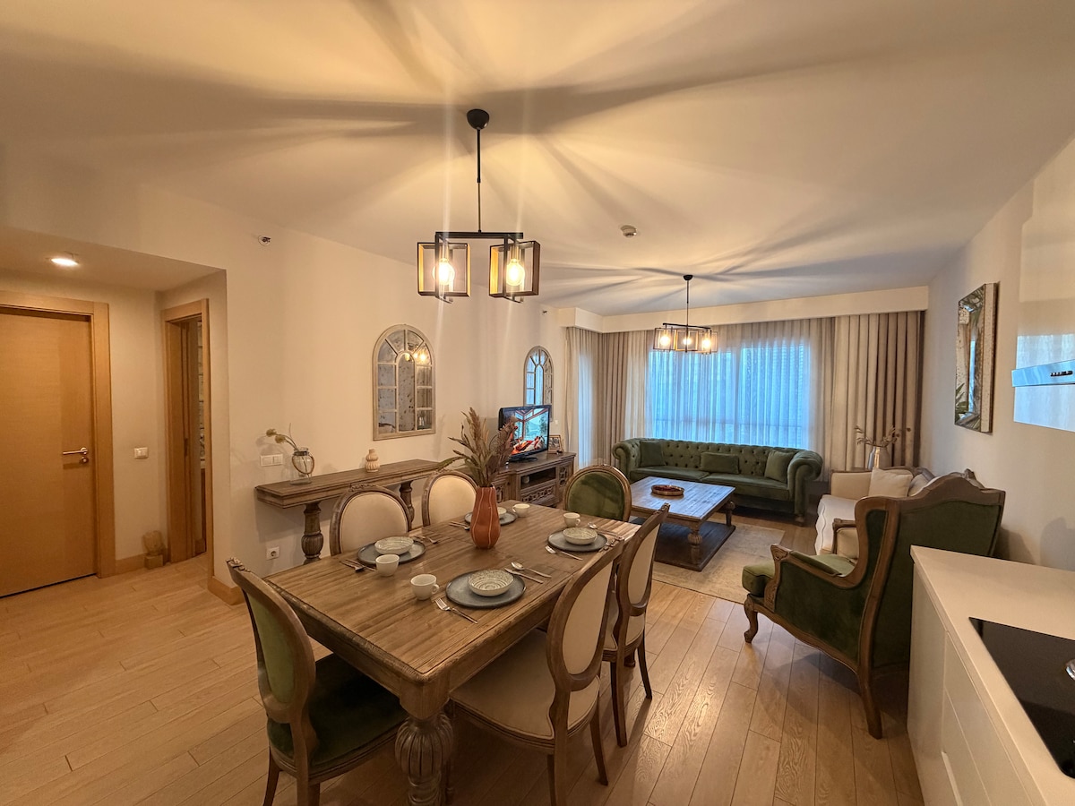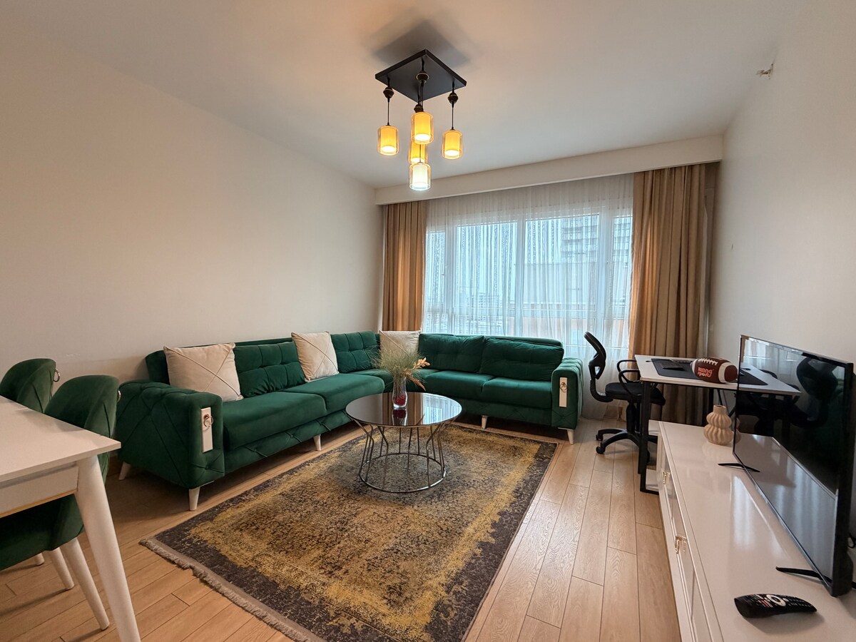 Enjoy a peaceful and comfortable stay in a stylish and modern home with stunning city views. It's the perfect place to relax and unwind away from the hustle and bustle of the city. It's also close to shops and restaurants, and just 700 meters from the new Tema World Mall, which features numerous restaurants, cafes, and clothing brands. It is also 3 km away from the Marmaray metro station, Halkalı, which allows you to travel throughout Istanbul, even to the Asian side.
