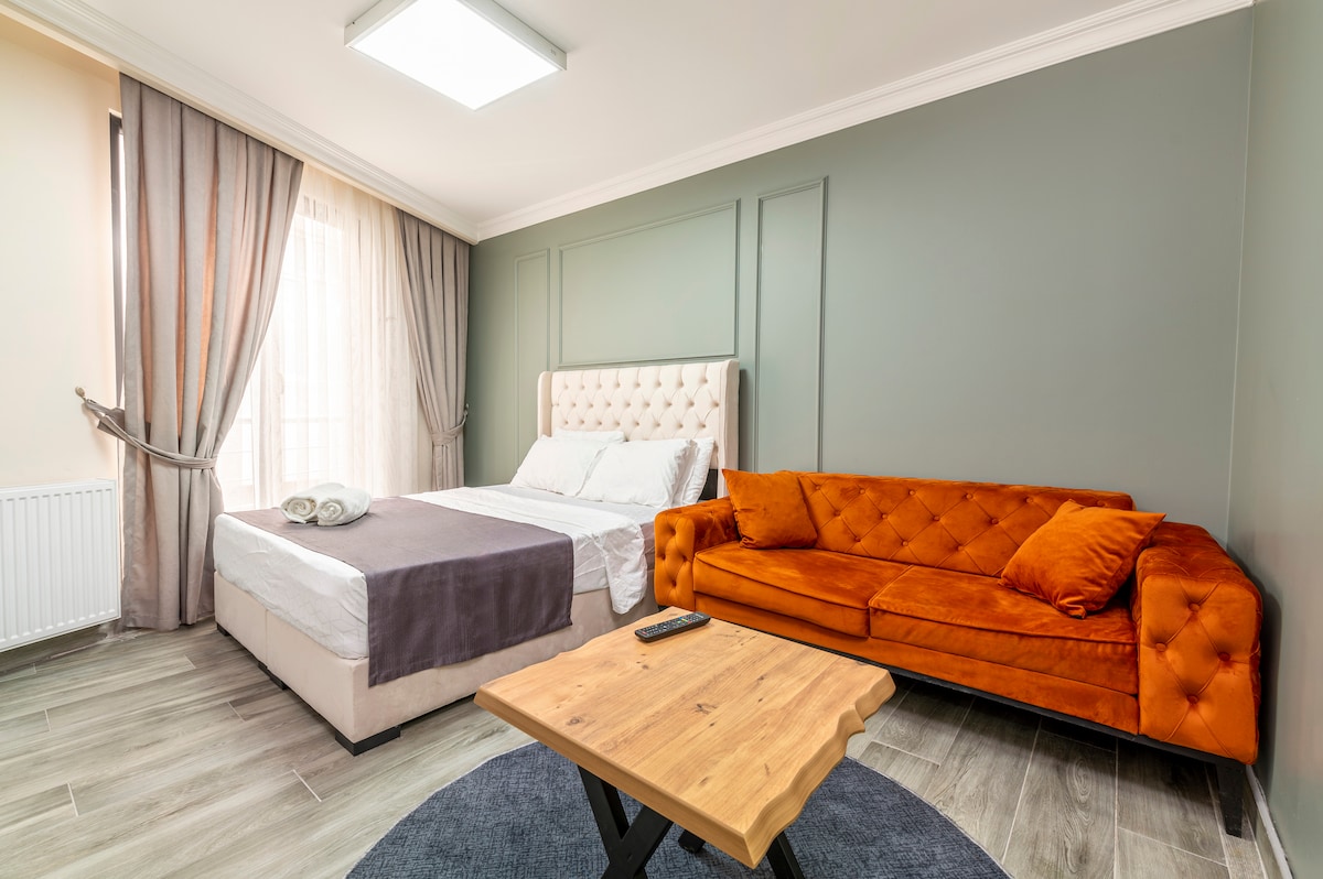 Konfor ve sıcaklığı bir araya getiren odamız, misafirlerimize ev rahatlığında bir konaklama sunar. Modern tasarımı, temizliği ve merkezi konumuyla öne çıkar. Toplu taşımaya, restoranlara ve turistik noktalara kolay erişim sağlar. Hızlı Wi-Fi, rahat yatak ve özenle hazırlanmış detaylarla keyifli bir deneyim sizi bekliyor. Kısa ya da uzun konaklamalar için ideal bir seçimdir.